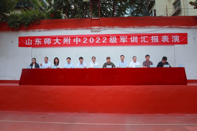 8月29日下午,山东师大附中校本部2022级军训汇报表演暨总结大会在学校体育场隆重举行。山东师大附中领导班子,武警山东总队机动支队中校副支队长刘兴光、2022级新生班主任、家长共同见证了2022级新生成长的力量。大会由政教处主任徐世水主持。