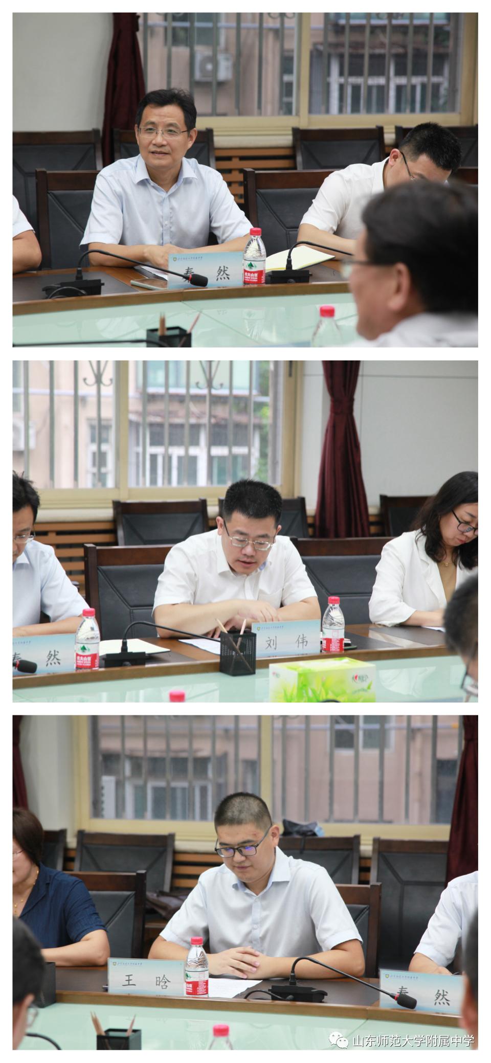 数学教研组组长王秀梅、英语教研组组长李敏、物理教研组组长王慧娜分别发言。三位援甘教师是各学科组年富力强的教师力量,也是经验丰富的一线教师,一定能胜任此次帮扶任务。三位组长一致表态,将作为援甘教师的坚强后盾,集全学科组之力,创造一切条件为帮扶学校对应学科组提供助力,通过线上线下等多种渠道融合方式,充分利用山东师大附中优质教育资源,助力当地学校学科组整体教科研水平的提升。