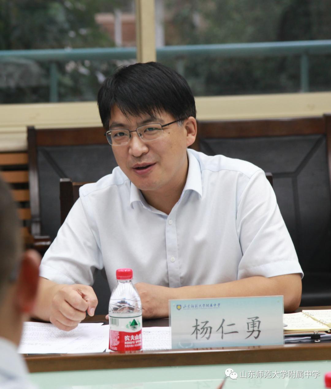 杨仁勇首先介绍了此次教育帮扶的基本情况。实施教育人才“组团式”帮扶是党中央持续推进乡村振兴战略,充分发挥教育帮扶阻断贫困代际传递的重要举措。此次教育帮扶采取取“校长+骨干”团队支教、跟岗研修相结合方式,创造条件将先进教育教学理念和优秀管理经验全方位植入当地教师教书育人、学校办学治校的全过程,对提升帮扶学校的师资队伍水平、改进教学方式方法、改善软硬件基础条件、提升整体育人水平具有重要作用。山东师大附中三位教师参加此次教育帮扶使命光荣,责任重大。