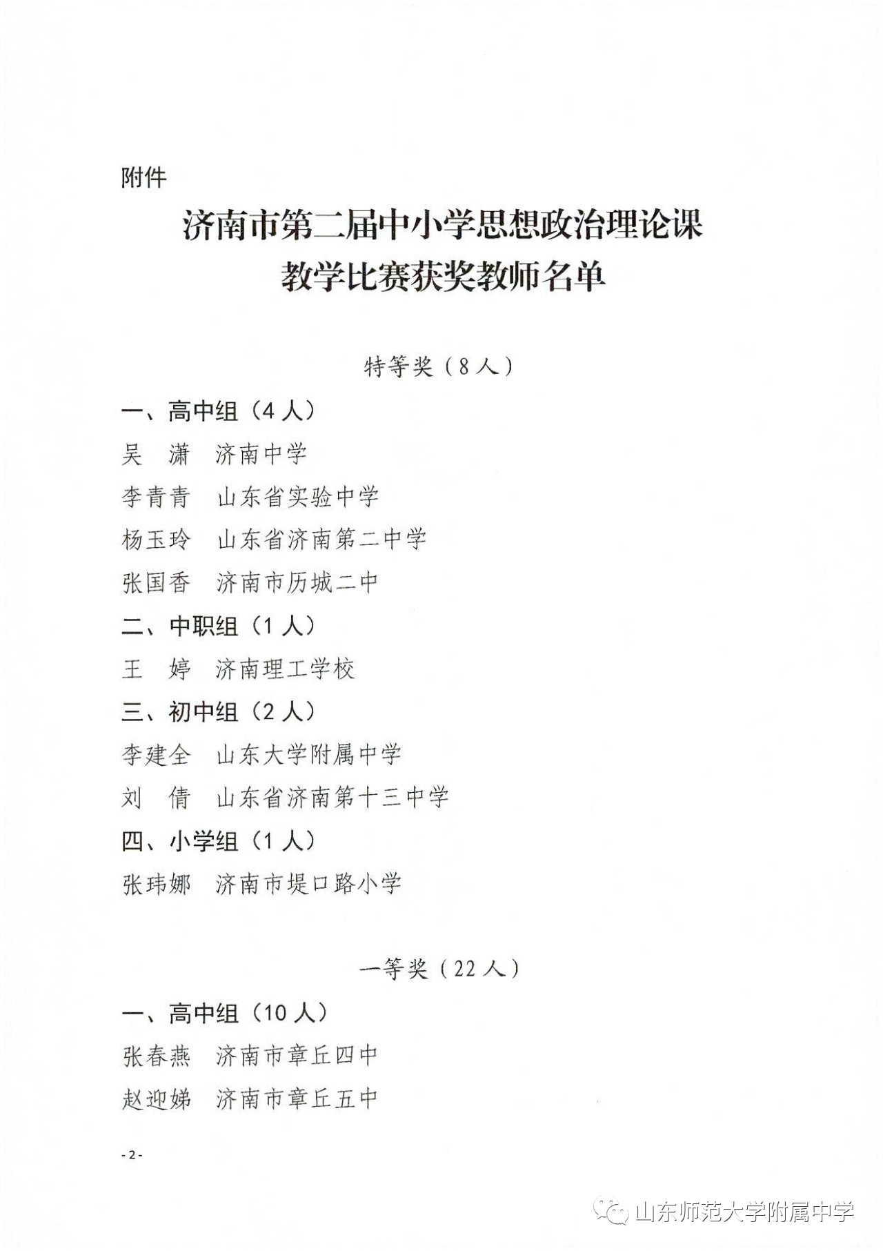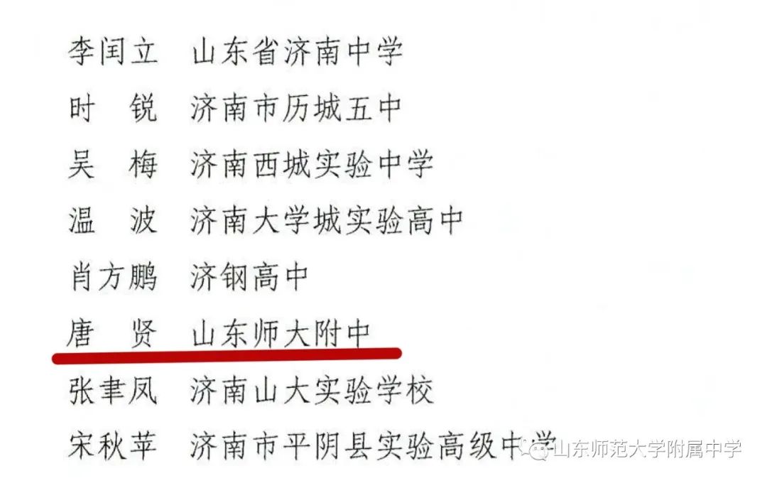 8月15日,济南市教育局公布了济南市第二届中小学思想政治理论课教学比赛获奖教师名单,山东师大附中政治组唐贤老师喜获一等奖。