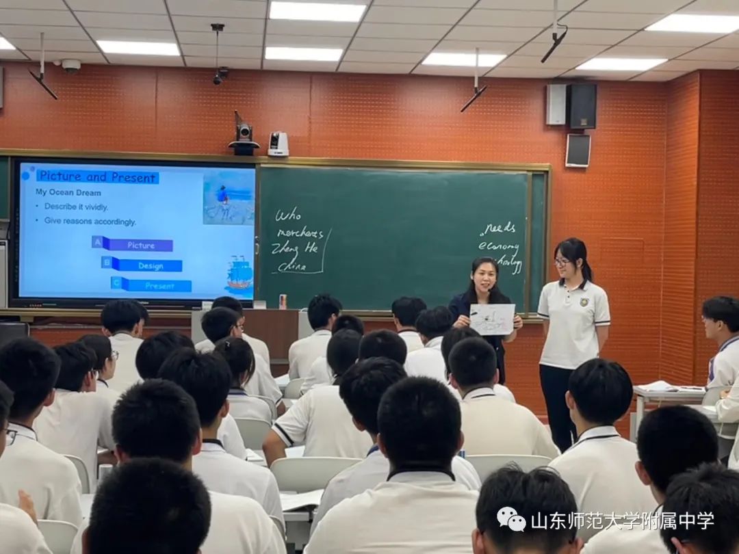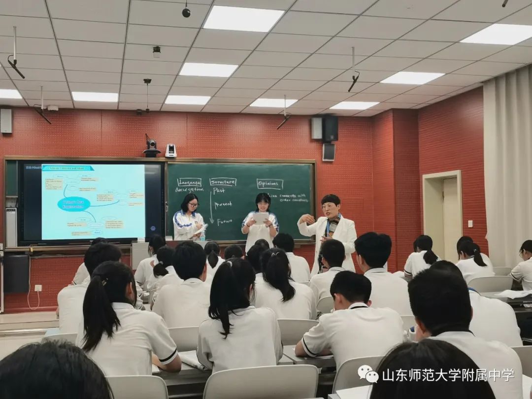 山东师范大学附属中学英语组于5月27日上午在幸福柳校区举行山东省学科基地省级教研活动暨校教学能手评选同题异构课堂教学实践。本次教研活动聚焦“新课标、新高考、新教材”背景下的课堂教学实施,为充分发挥省、市学科基地示范辐射作用,展示山师大附中英语组研究成果,本次活动采用网上直播形式,在济南市区域教研群,省齐鲁名师教研群观课人次达三百余次。英语组教师通过现场观摩、直播听课等方式,参与本次教研活动。