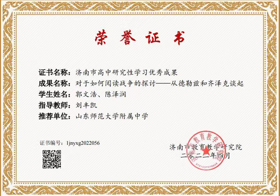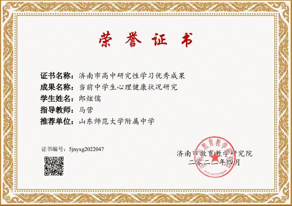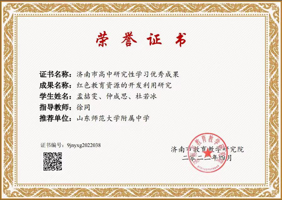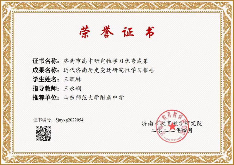 4月22日,由济南市教育教学研究院组织的“第五届高中研究性学习成果暨创造力成果转化应用展示会”落下帷幕,山东师大附中两校区推荐的20件学生成果全部获得“济南市高中研究性学习优秀成果”奖。
