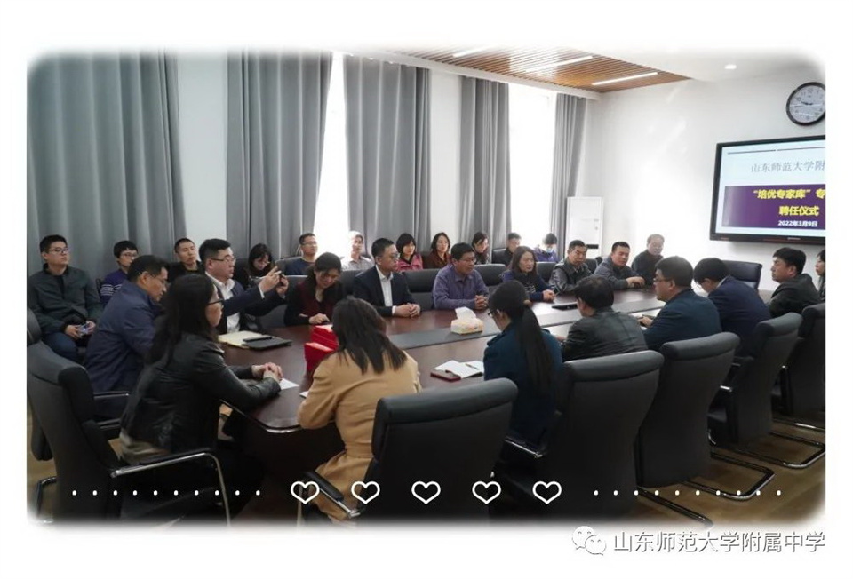 为了积极推进“领航学校”创建工作的扎实有序开展,进一步创新优生培养方式,集中力量培养学科拔尖和综合素质优异学生,3月9日上午,山东师大附中两校区同时举行“培优专家库”首批专家委员聘任仪式。山东师大附中党委书记孟宪喆,副校长、纪委书记陈德海,副校长、校本部执行校长刘从军,副校长、幸福柳分校执行校长杨仁勇,幸福柳分校执行校长助理王彬,校本部教务处主任张卫普,两校区教育发展中心主任孙逵、孙腾飞出席聘任仪式,各学科受聘教师参加了会议。会议分别由孙逵和孙腾飞主持。