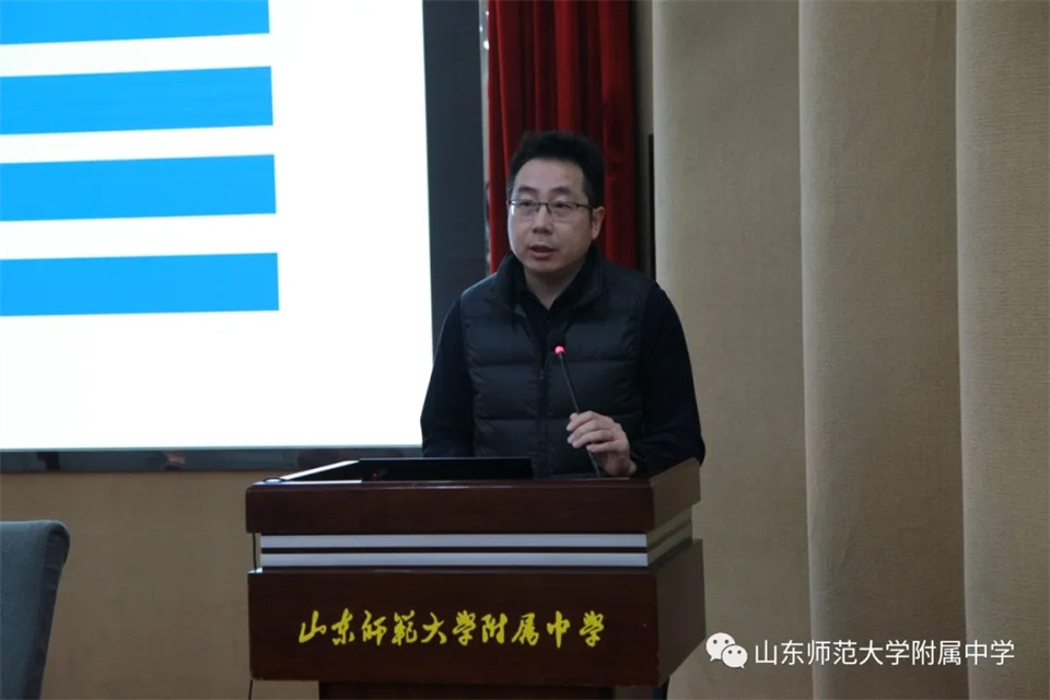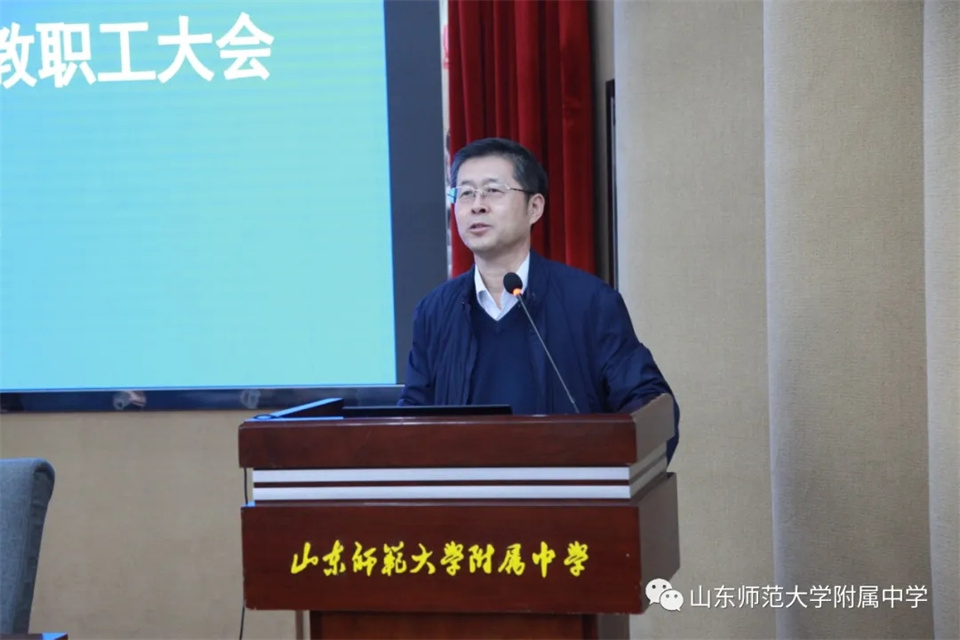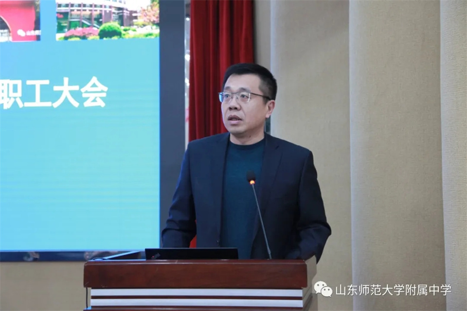 2月14日,山东师大附中在校本部报告厅举行全体教职工大会。党委书记孟宪喆主持会议,全体教职员工参会。