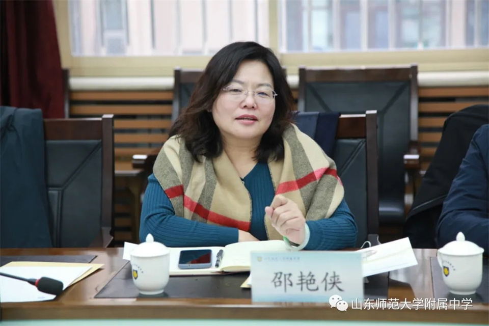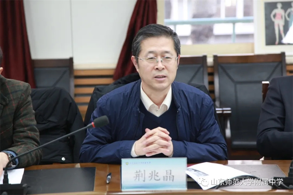 荆兆晶就山东师大附中近年来高考情况、教师队伍建设、学科竞赛成绩、教育教学科研等方面取得的丰硕办学成果进行了介绍。
