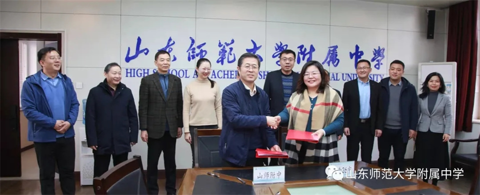 山东师大附中是一所文化底蕴丰厚的高中,建校71周年来,拥有丰富的教育教学资源和良好的社会声誉,为国家培养了一大批优秀学子,在省内乃至全国有着重要影响力。山东省济南第二十六中学1958建校,有着醇厚的文化氛围和悠远的育人传统。在槐荫区以实施“教育兴”促“西兴”的战略下,树立“一定要让孩子在家门口享受一流的教育”的目标,山东师大附中和二十六中通过科研副校长挂职契机深化合作模式,打破初中与高中教育的壁垒,开辟优化初中与高中育人新途径,整合优质教育教学资源。两所学校签订战略合作协议,携手前行,计划在学校管理、初高中课程开发、教学研究,教科研研究、学生管理、学生交流、尖子生培养等全方位开展共建工作。