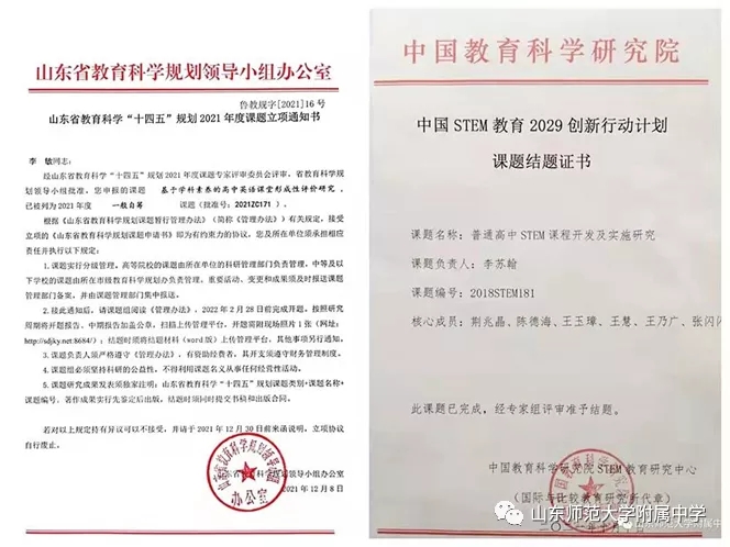 1项全国课题结题,1项课题被立项为省教育科学“十四五”规划课题