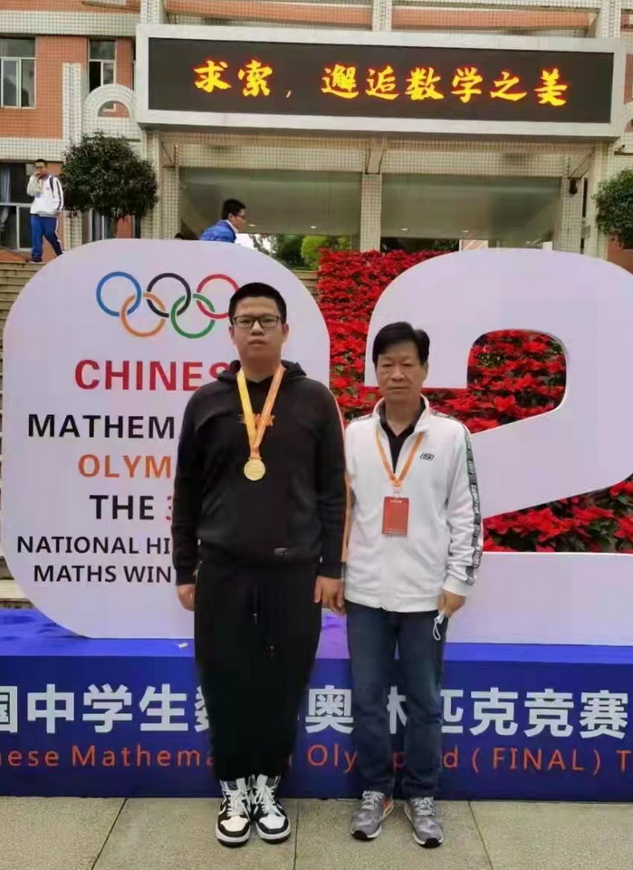 陶竟天与主管教练员傅平修老师作为中国中学生最高级别、最具规模、最有影响的数学竞赛,全国中学生数学奥林匹克竞赛(CMO)对培养数学拔尖创新人才,提高中学数学教学水平有着重要意义,是中学层面全国最优秀数学选手学习交流的平台。本届CMO在福建省福建师范大学附属中学举办,共559名选手参加,产生金牌183枚、银牌219枚、铜牌142枚。其中山东省代表队共夺得金牌4枚、银牌8枚、铜牌2枚,山东师大附中陶竟天同学为山东省代表队赢得一枚宝贵的金牌!