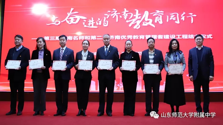 12月16日下午,济南市教育局举行第三批济南名师和第二批济南优秀教育管理者建设工程结业仪式,正式向马艳文、刘志刚颁发第三批济南名师证书,向杨平颁发第二批济南优秀教育管理者证书。