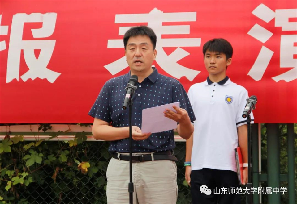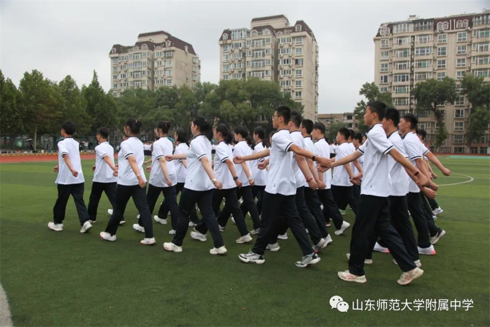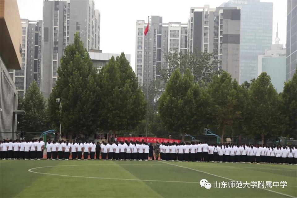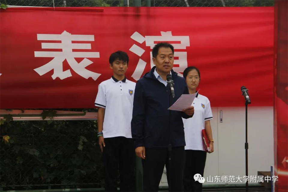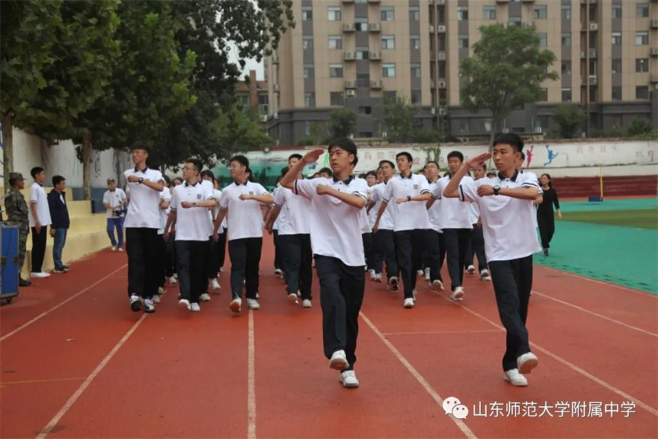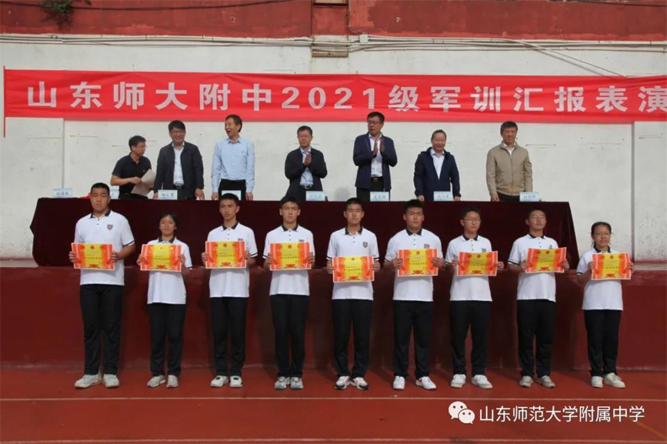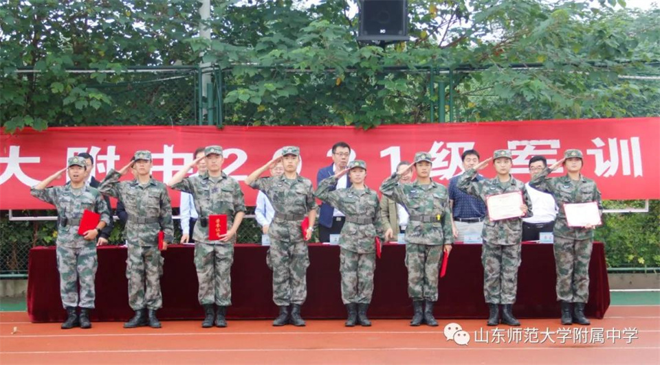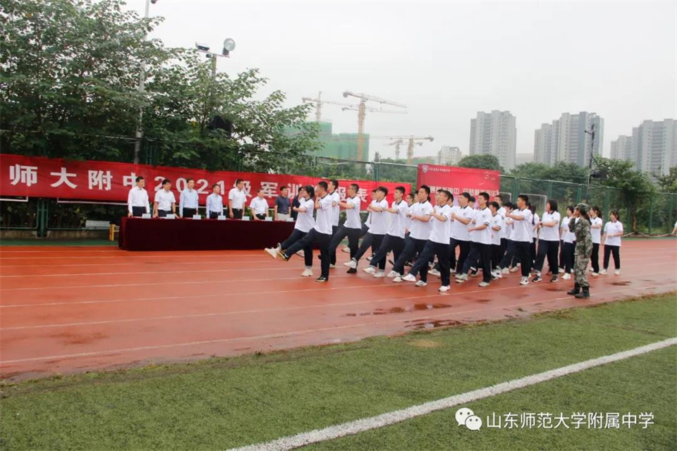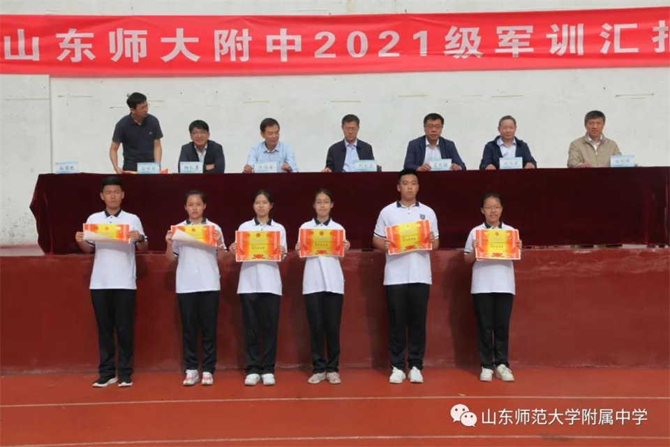9月5日,山东师大附中校本部与幸福柳分校2021级军训汇报表演暨总结大会分别在两校区操场隆重举行。山东师大附中校长荆兆晶,党委书记孟宪喆,副校长陈德海,副校长、校本部执行校长刘从军,副校长、幸福柳分校执行校长杨仁勇,部分中层干部,军训团团长侯大阪等15位教官和高一年级全体班主任、学生、部分学生家长参加活动。活动分别由政教处主任徐世水、李宏波主持。