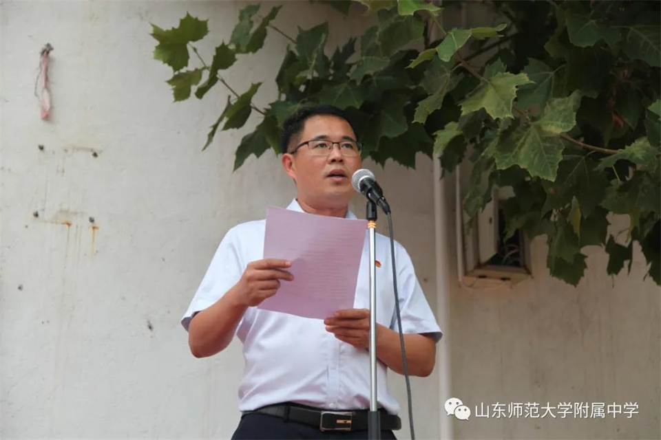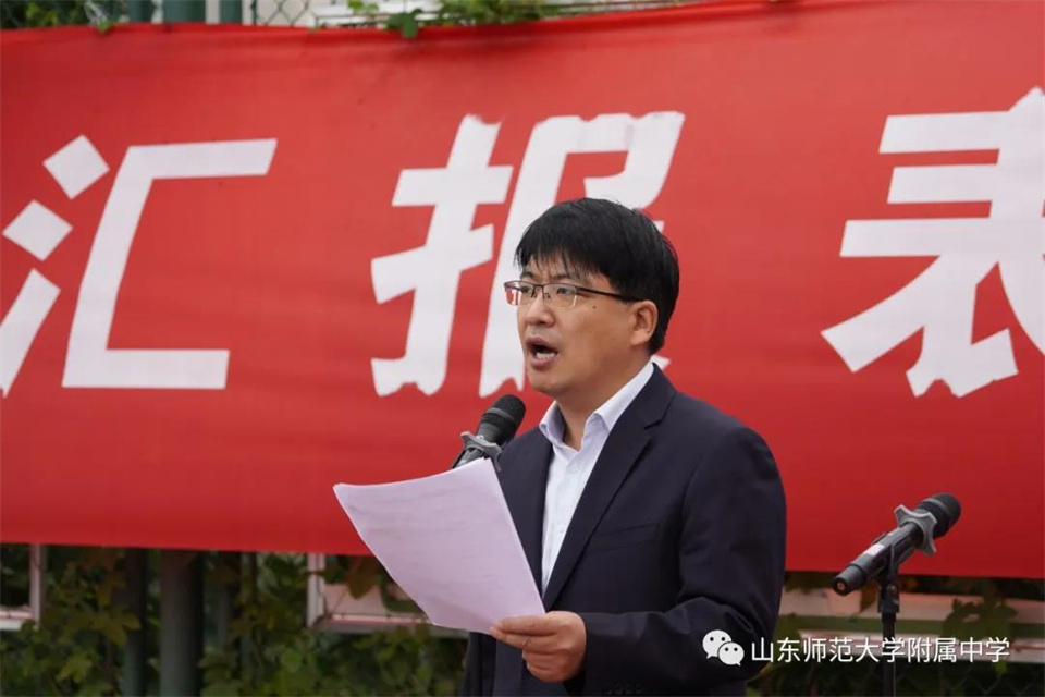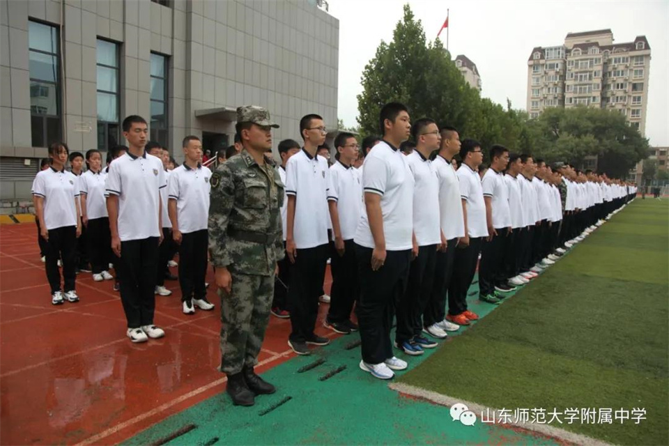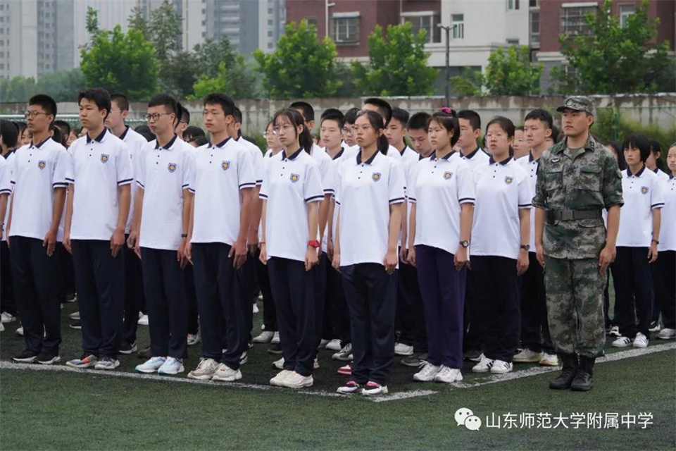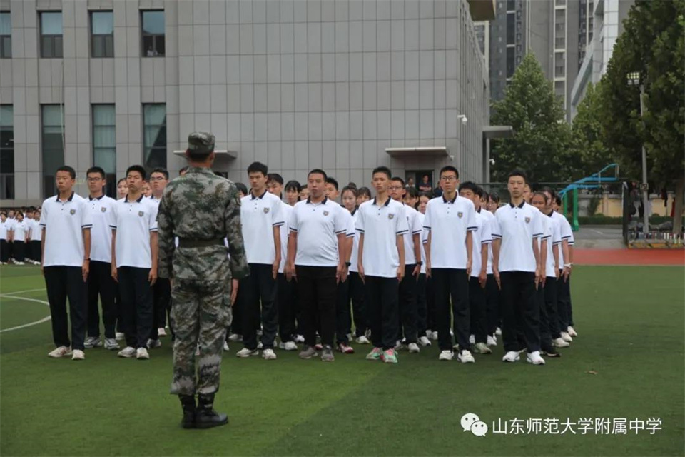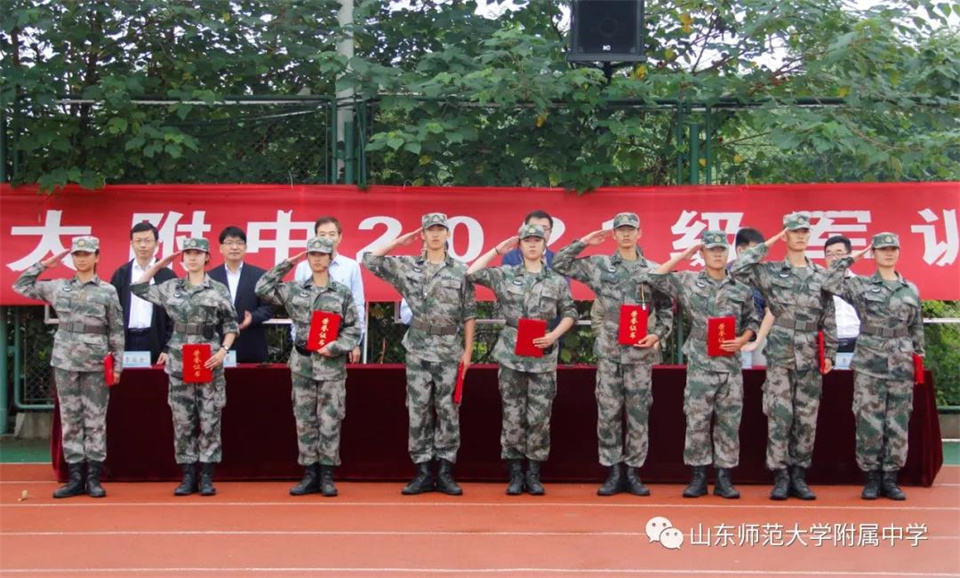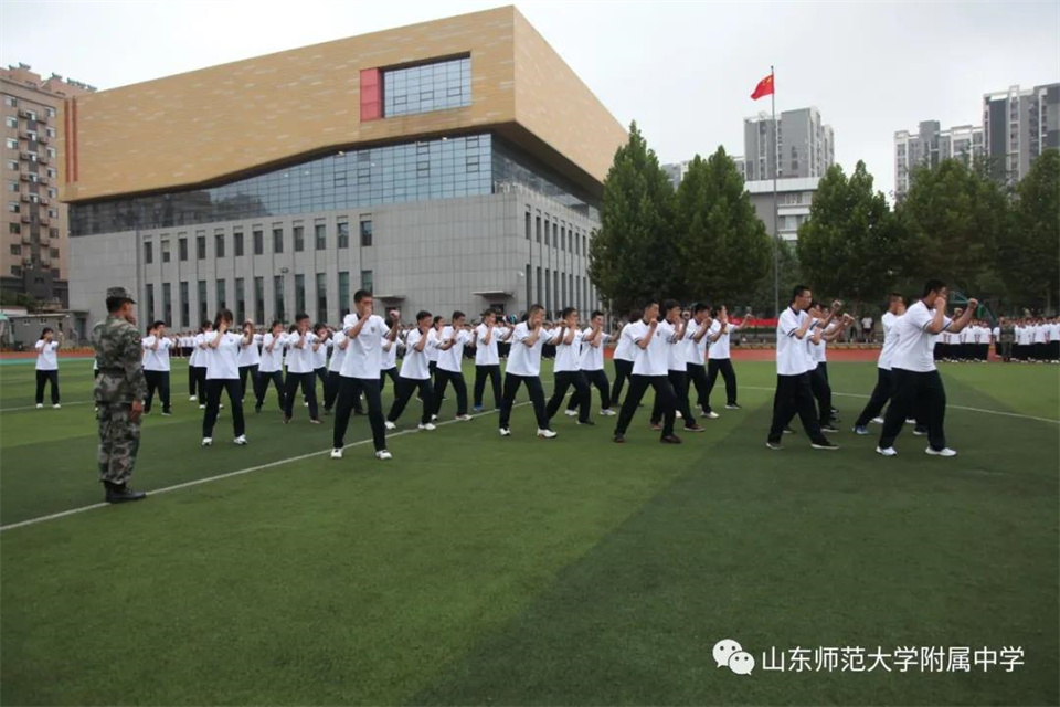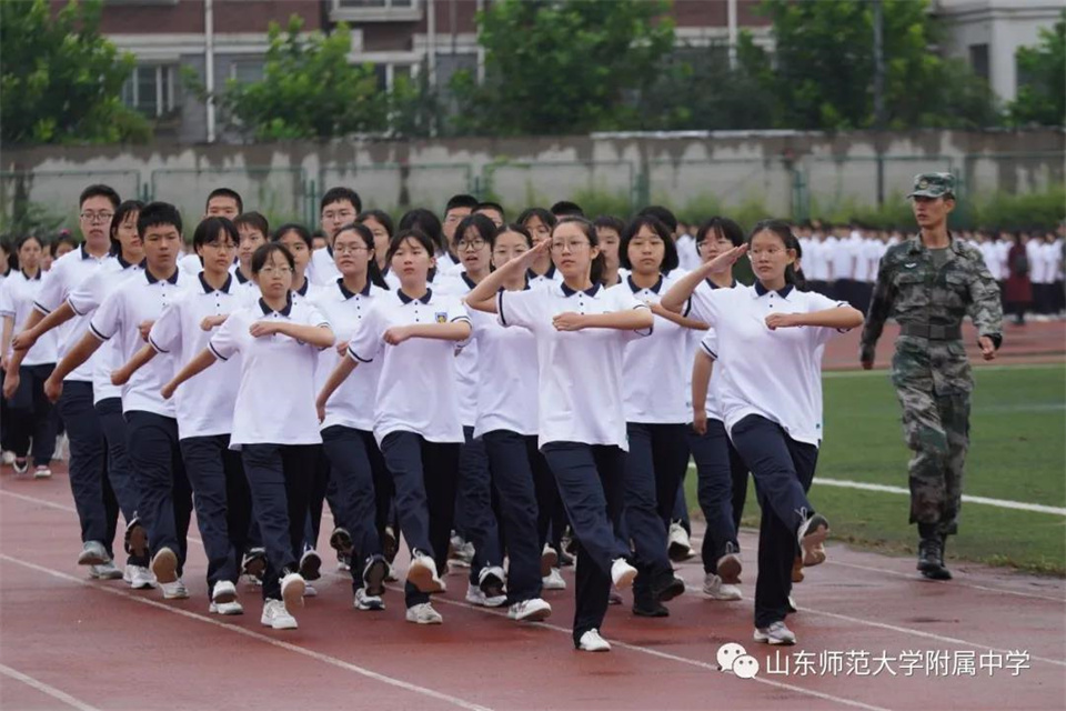 9月5日,山东师大附中校本部与幸福柳分校2021级军训汇报表演暨总结大会分别在两校区操场隆重举行。山东师大附中校长荆兆晶,党委书记孟宪喆,副校长陈德海,副校长、校本部执行校长刘从军,副校长、幸福柳分校执行校长杨仁勇,部分中层干部,军训团团长侯大阪等15位教官和高一年级全体班主任、学生、部分学生家长参加活动。活动分别由政教处主任徐世水、李宏波主持。