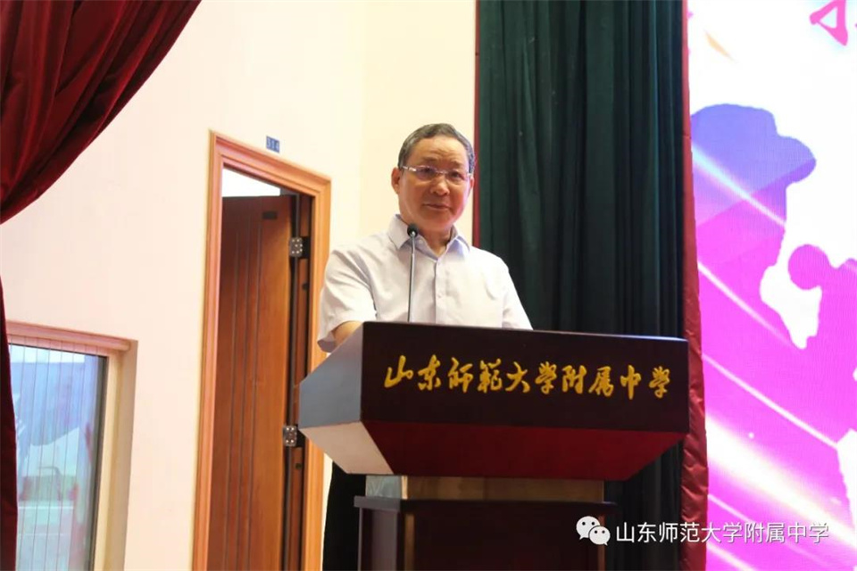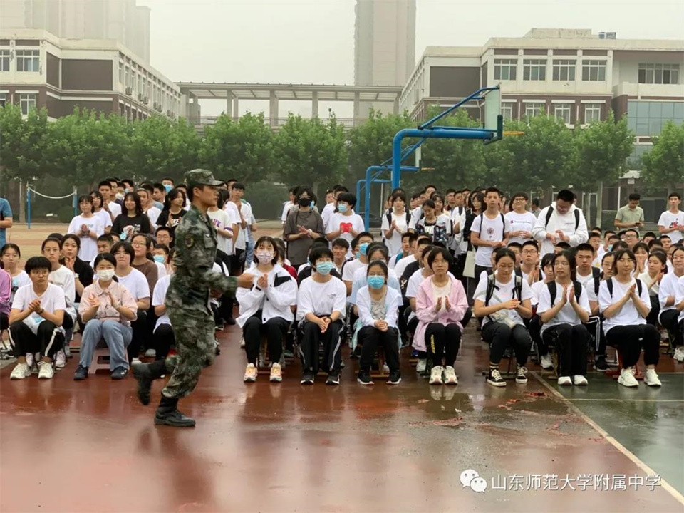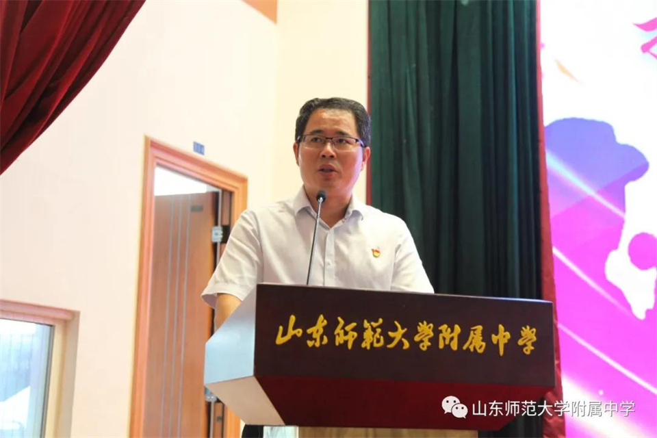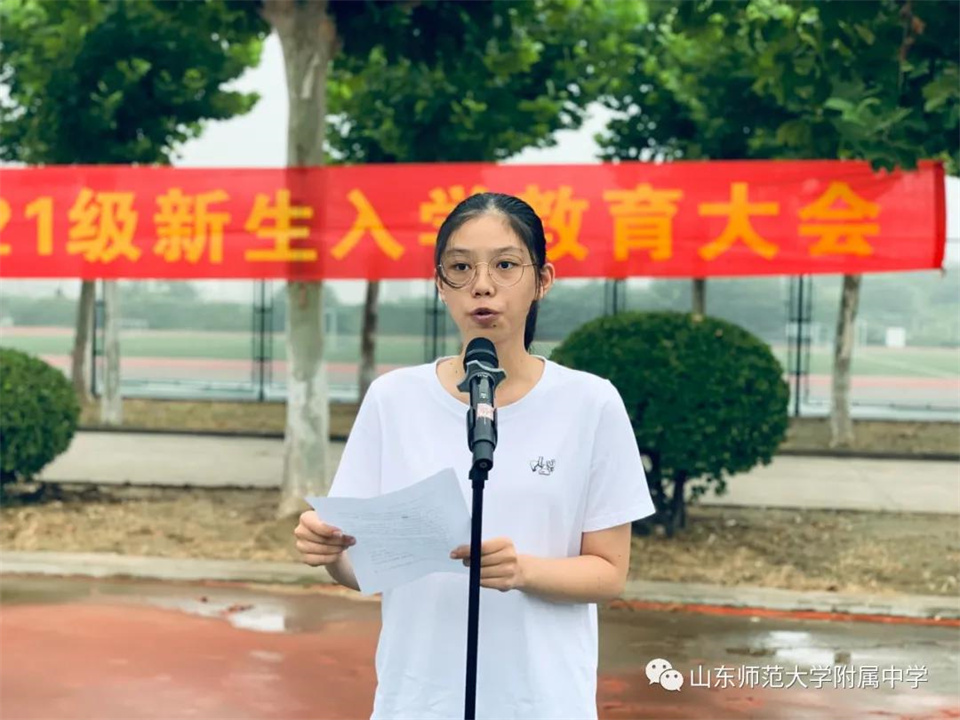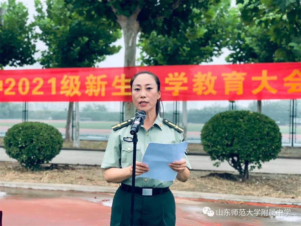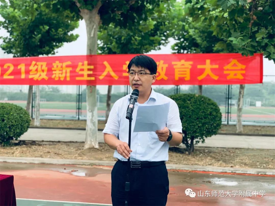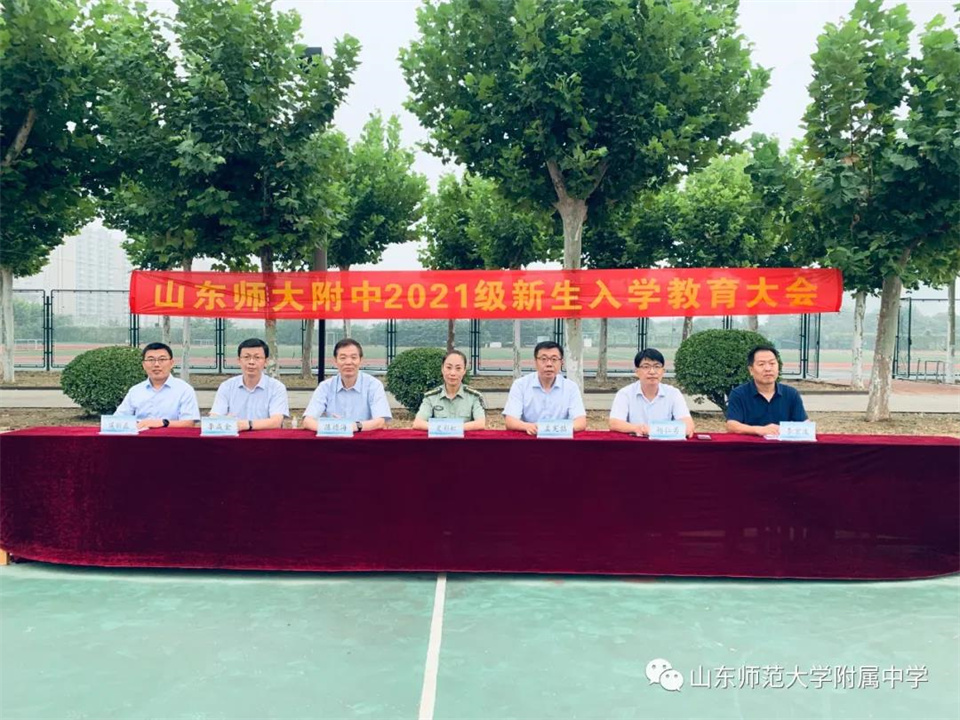 8月30日下午,山东师大附中幸福柳分校2021级新生入学教育大会在篮球场隆重举行。山东师范大学学生处(武装部)副部长史彩虹,山东师大附中党委书记孟宪喆,副校长陈德海、杨仁勇出席大会,山东师大教官连教官及分校区2021级班主任和新生参加了大会。大会由分校区高一年级组长侯新磊主持。