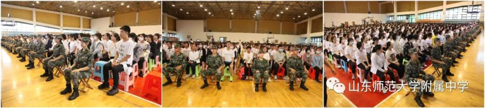 8月31日上午,山东师大附中校本部2021级新生开学典礼暨军训动员大会在体育馆隆重举行。山东师大附中副校长、校本部执行校长刘从军,军训团团长侯大阪,校本部执行校长助理刘明晖,政教处主任徐世水,教务处主任张卫普,总务处主任卢光涛,党政办公室副主任颜炳杰,15位教官和高一年级全体班主任和新生参加大会。大会由高一年级组长孙国旺老师主持。