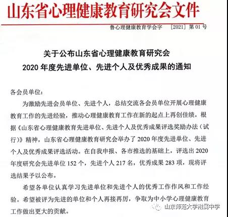 下一步,山东师大附中将以此荣誉为契机,继续推进心理健康教育工作,在实践中探索更加科学心理健康教育模式,不断创新心理健康教育工作模式,护航师生身心和谐发展。