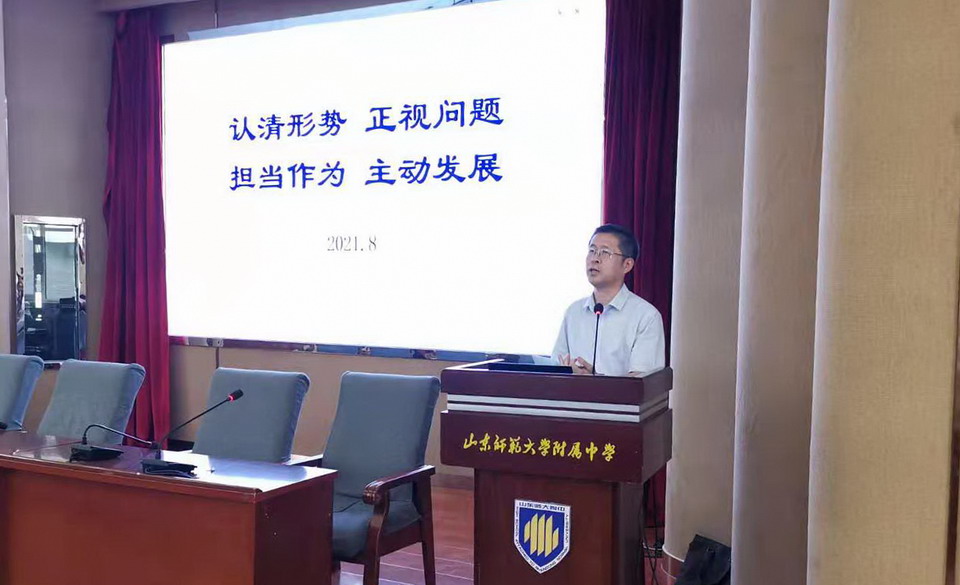 2021年8月16日至8月17日,山东师大附中在校本部报告厅举行了2021年暑期干部培训会议,会议主题为“会诊教育教学,提升教育质量”。全体中层及以上干部参会,副校长陈德海主持会议。