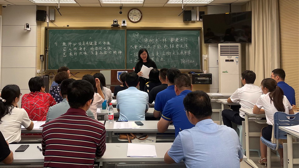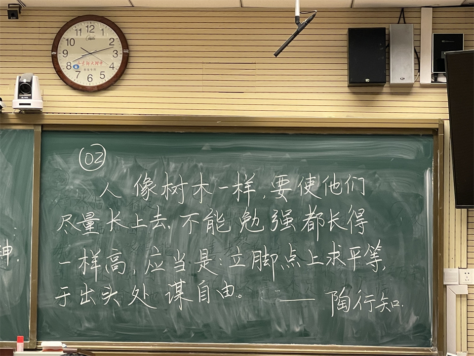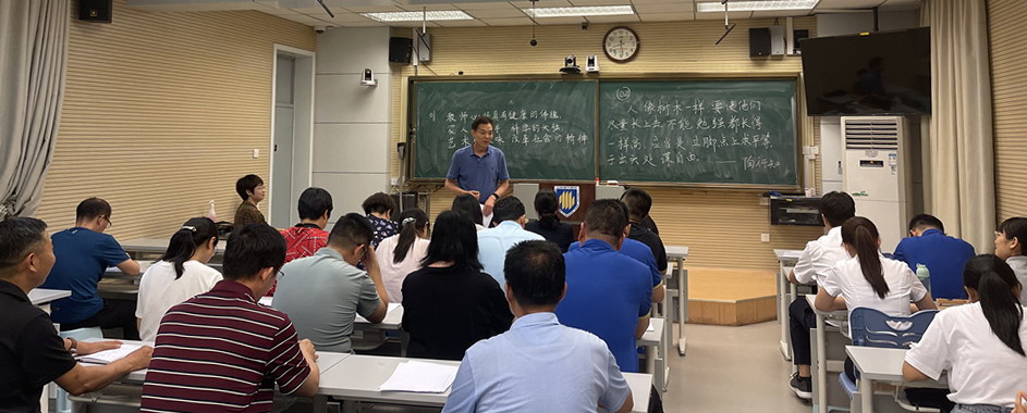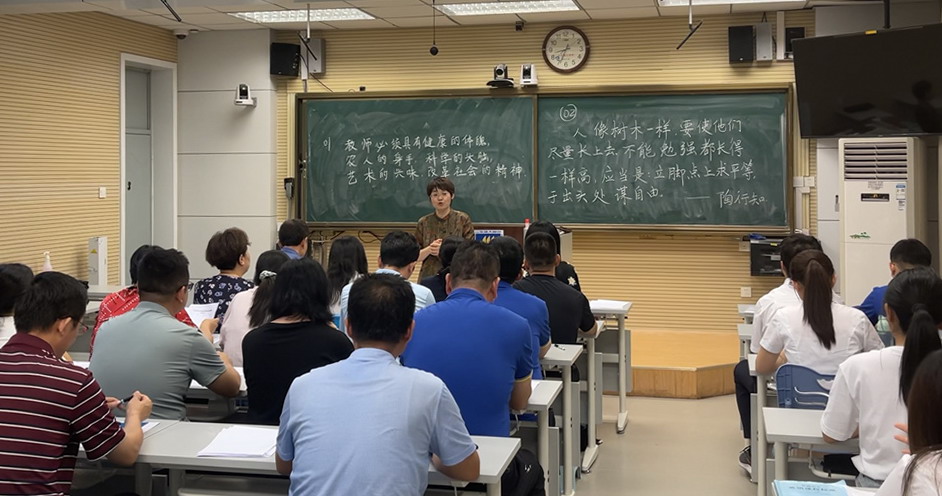 本次比赛分三个环节:限时授课、普通话、粉笔字。在限时授课环节,每位学员限时5分钟模拟教学,评委通过教学片段综合评价导入、提问、讲解、组织、板书设计等课堂教学基本技能。学员们用心选取代表本学科特质的教学片段,精心准备,全方位地展示自己的课堂教学基本功;在普通话比赛环节,短文朗读材料分别选取了毛泽东、邓小平、习近平等党和国家领导人关于教育、教师的重要论述,每位学员在展示的同时,又在庆祝建党100周年前夕这一重要时刻重温党的教育事业的路线、方针、政策,具有独特教育意义;在粉笔字比赛环节,书写素材选取了我国教育史上重要的教育思想经典,既有《学记》中关于教学关系的论断,又有陶行知等老一辈教育家的教育箴言。