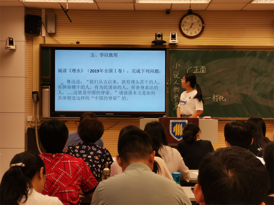 学员比赛完成后,马艳文、宁卫兵老师分别代表文科、理科组限时授课评委作了点评,徐建平老师代表普通话评委给出指导,杨玉华老师代表粉笔字评委作了评价反馈。