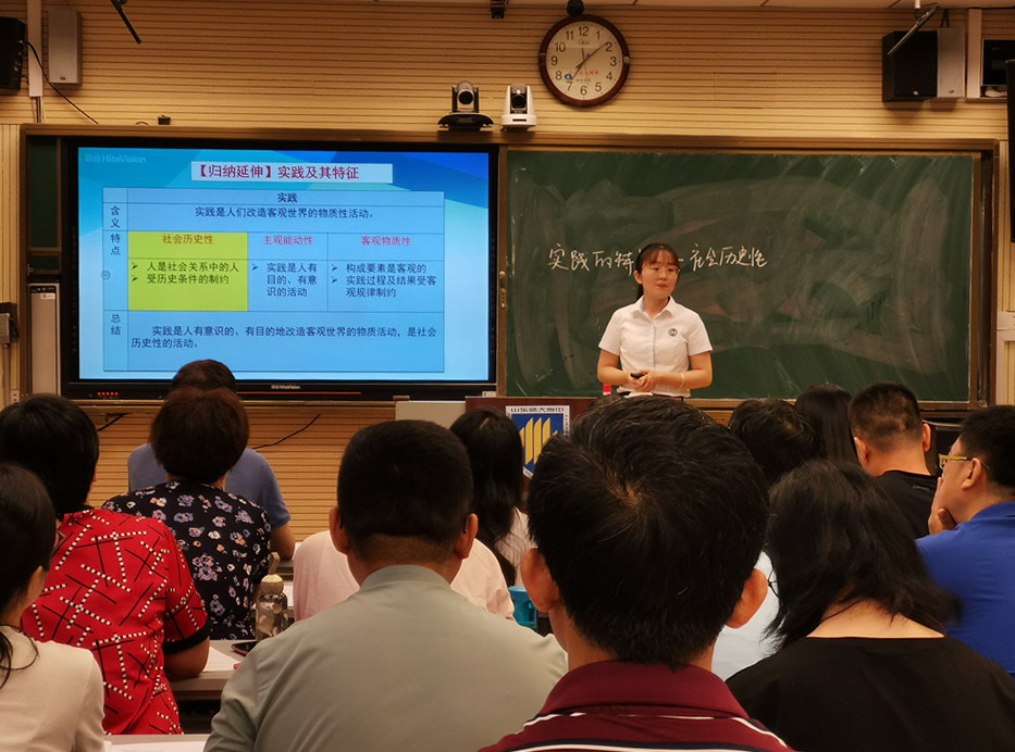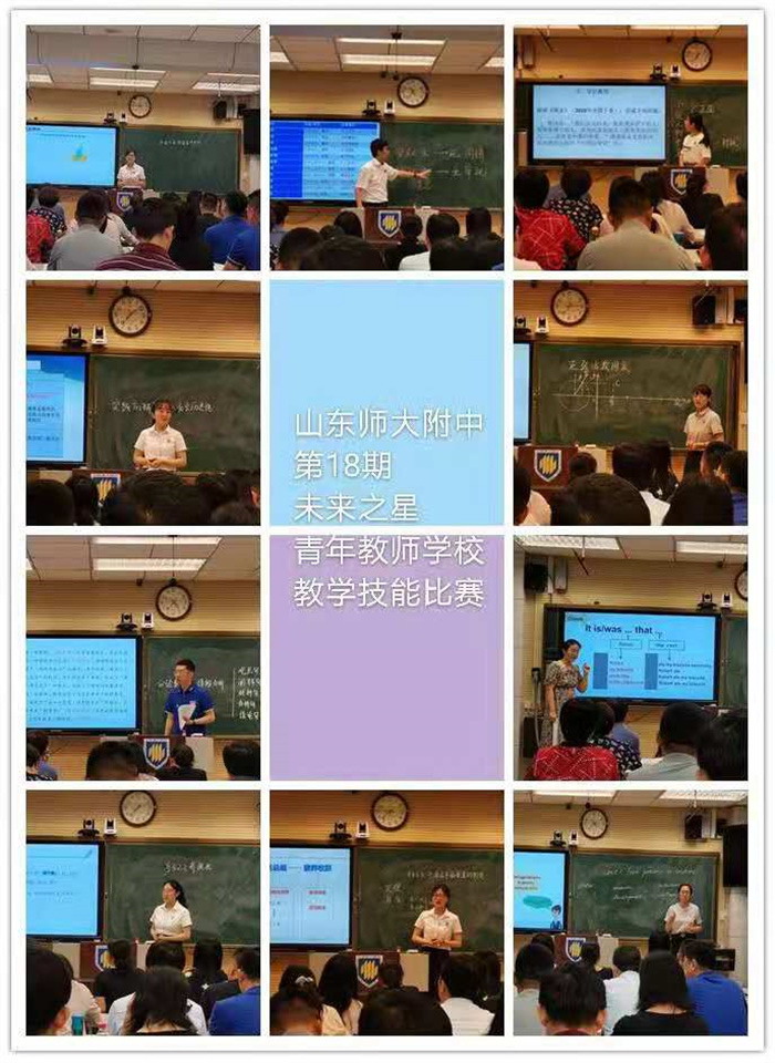 在全校上下热烈庆祝建党100周年之际,6月30日晚6:30,山东师大附中第18期未来之星青年教师学校教学技能比赛暨转正定级课在校本部逸夫楼录播教室如期举行。山东师大附中纪委书记、副校长陈德海应邀出席比赛并担任总督导,党委组织员、党政办公室副主任翟德玉作为转正定级课观察员参加活动,幸福柳校区教务处主任李成金,各学科教研组长、部分骨干教师应邀参加此次活动并担任评委,第18期星校全体学员参加了限时授课、普通话、粉笔字教学技能比赛。活动由校本部教科处主任李贵玲主持。
