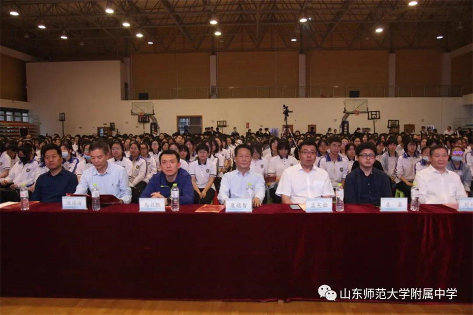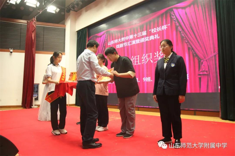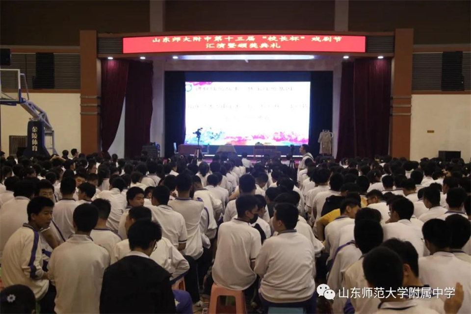 为庆祝中国共产党成立100周年,引领中学生更好的传承党的红色基因,更好的将红色主题教育和思政教育贯穿在青年学生的成长道路上,2021年5月21日晚,山东师大附中第十三届“校长杯”戏剧节汇演和颁奖典礼在校本部体育馆隆重举行。山东师范大学党史学习教育第四督导组组长康德智,山东师大附中党委书记孟宪喆,山东省团校组织宣传部部长马兴凯,副校长陈德海、副校长兼本校区执行校长刘从军,山东师范大学党史学习教育第四督导组成员袁鑫,学校各部门中层干部、高一年级全体班主任老师和同学、部分家长来到现场观看演出。