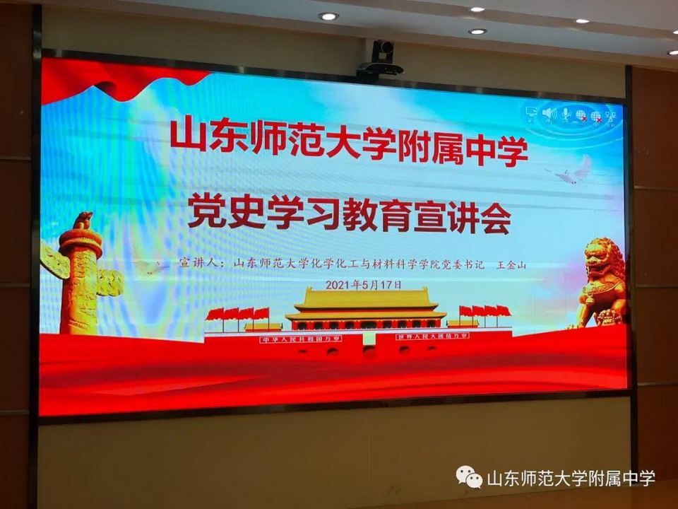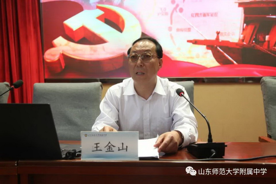 5月17日,山东师大附中召开党史学习教育宣讲会。山东师范大学党史学习教育宣讲团成员、化学化工与材料科学学院党委书记王金山作了《学习百年党史,胸怀千秋伟业》主题报告。会议由山东师大附中党委书记孟宪喆主持,两校区全体党员参加会议。