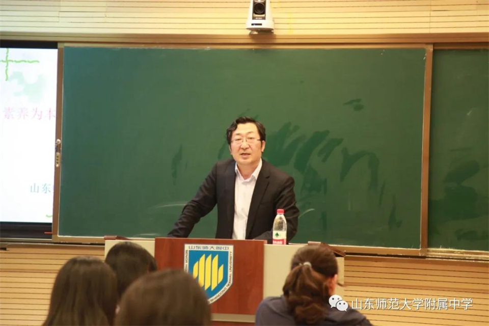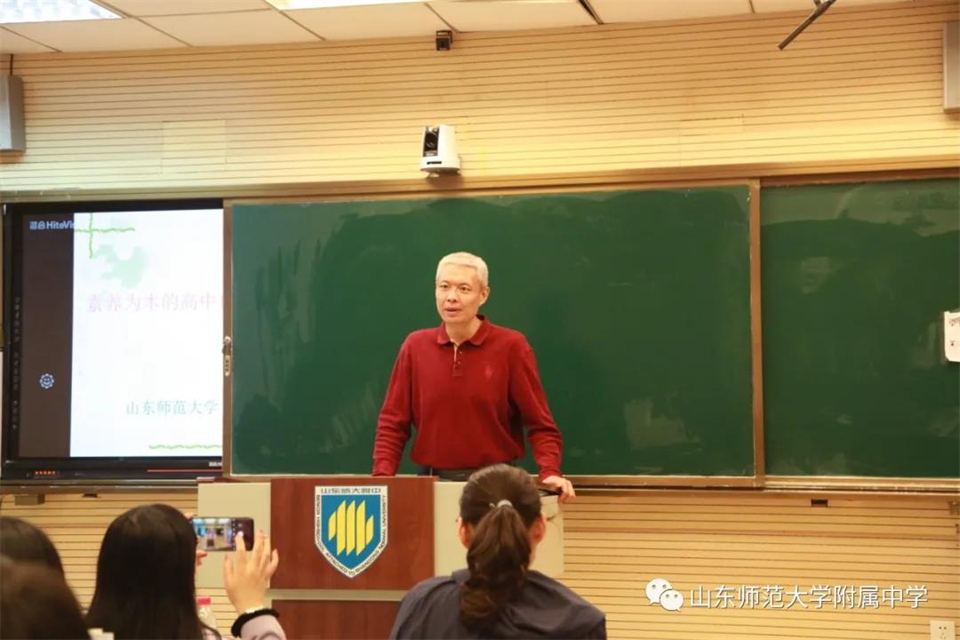 盛连蔚对与会全市高中化学教师提出要求,希望在深入分析课程标准和了解学情的前提下,做好情景、问题、评价、活动四个设计,精选内容,讲深、讲透,引导学生深入分析,提升济南市高中化学项目式教学研究水平。