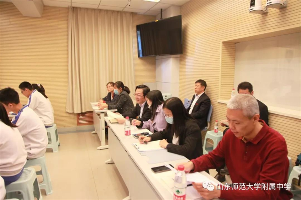 4月28日下午,2021年济南市高中化学第二次“面对面”培训暨“素养为本的高中化学项目式教学”培训在山东师大附中举行。济南市化学教研员盛连蔚和济南市各高中化学教师,山东师大化学院化学教学论教研室毕华林教授、亓英丽副教授、贾梦英副教授、姜言霞副教授、卢姗姗副教授及化学学科教学研究生在现场参加听课、评课活动。山东师大附中校长荆兆晶,党委书记孟宪喆,副校长陈德海、刘从军出席活动。培训活动在网络平台同步直播,活动由盛连蔚主持。