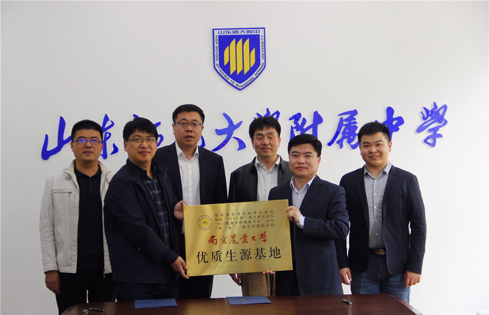 在会谈中,孟宪喆介绍了山东师大附中的办学历史、办学理念、办学特色及近年来所取得的教育成果,徐刚介绍了南京农业大学的办学水平、社会声誉及招生就业等情况。双方本着互惠互利的原则签订了“南京农业大学优质生源基地协议书”。双方一致表示,将以共建优质生源基地为新起点,进一步加强合作,增进交流,提升办学层次,通过共同努力,为祖国农业建设培养更多更优秀的高层次人才。会谈结束后,举行了签字和授牌仪式。