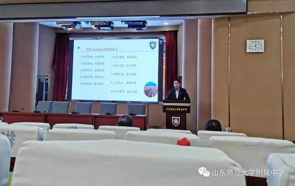 4月1日,山东师大附中校本部在报告厅举行济南市高三模拟考试分析会。山东师大附中校长荆兆晶,副校长陈德海,副校长、校本部执行校长刘从军,校本部执行校长助理刘明晖,教务处主任张卫普,相关部门干部和全体高三老师参加了会议。会议由高三年级组长孙国旺主持。