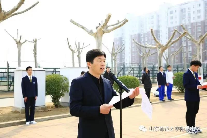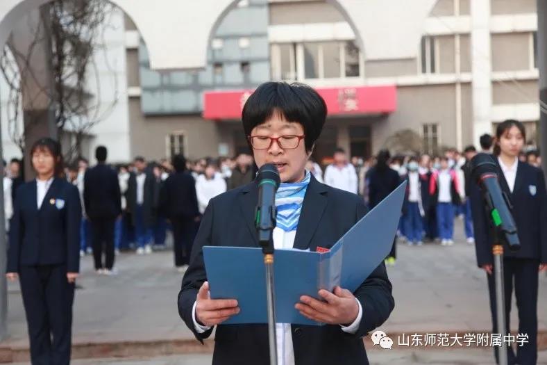 3月8日上午,山东师大附中正式启动第六届数学节活动。高二数学备课组组长汤菁、数学教研组副组长宁卫兵分别在校本部、幸福柳分校升旗仪式上,作了题为《探数学之妙用,研数学之本源》的主题发言,全校师生参加活动。