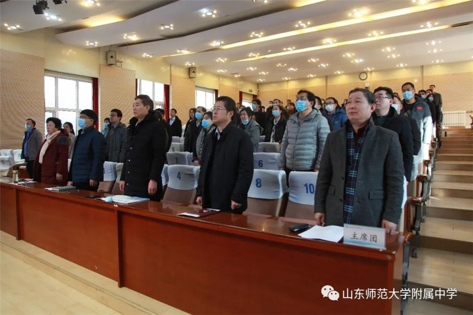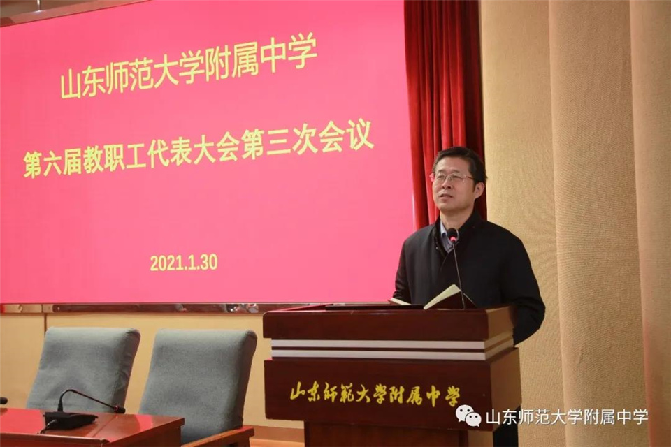 2021年1月30日上午,山东师范大学附属中学在校本部报告厅举行第六届教职工代表大会第三次会议。会议在雄壮的国歌中开幕,党委书记孟宪喆主持会议,全体教代会代表参会。