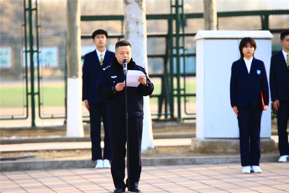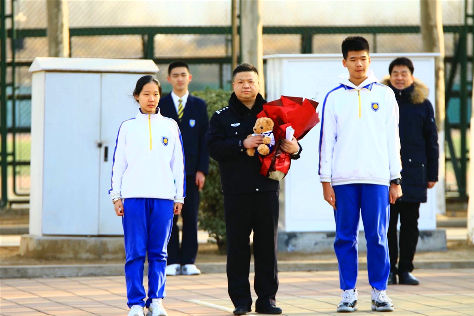 2021年1月10日是首个中国人民警察节,也是我国第35个110宣传日。为致敬警察,致敬为青年学生逐梦而默默奉献的每一个人,1月11日,山东师大附中举行“我愿负重前行,助你勇敢逐梦”主题升旗仪式。学校特邀济南市公安局历下区分局文化东路派出所民警张艳梅和市中区分局杆石桥派出所民警孙双胜分别在两校区进行国旗下演讲。