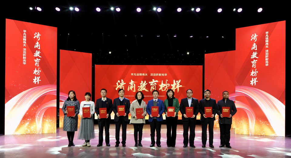 首届“济南教育榜样”选树活动由中共济南市委宣传部、济南市精神文明建设委员会办公室、济南市教育局和山东商报社联合举办。在学校推选、区县评选推报的基础上,经专家评审,共选树出学前领军榜样、基教改革榜样、暖心服务榜样、智创团队榜样、扶贫支教榜样、职教创新榜样、潜心育人榜样、为人师表榜样、教育管理榜样、党建先锋榜样等10大类、共100个首届“济南教育榜样”。每个榜样的先进事迹、奉献精神都诠释了‘政治坚定、心存敬畏、事不避难、快干实干’的济南教育精神,生动展现了新时代教育人的责任担当。