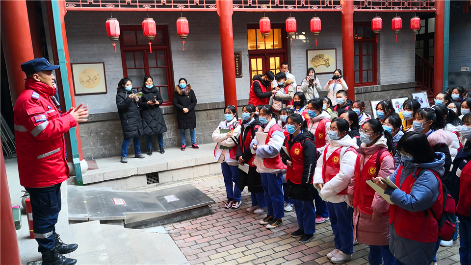 在槐荫区振兴街街道办事处,学生们参观了槐荫区农民工安全生产培训教育体验基地。他们了解社区安全应急管理情况,接受安全演练教育,体验消防安全训练,感受到槐荫区为农民工打造安全家园的有温度的管理。