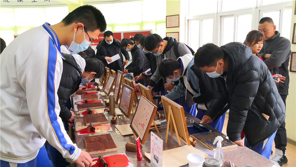 在东风街道办华能社区,学生张忠义说:在参观过程中,伴随着宋书记的讲解,党建服务中心的内部被我们一层层的探索开:人大代表联络站和社区廉音室、社区党建办公室和民情恳谈室、初心讲堂大厅、廉音门、文化活动室。一间间功能室、一幅幅宣传画无一不体现了“党建聚合力,文化蕴华能”工作理念。在为爱发声录播室,看着墙上一张张幸福的照片,我的心中也充满了感动,不只因为照片本身,也是看到了组成这些照片背后的一个个家庭,是什么保障着这些家庭的幸福?不正是我们强大的国家,不正是党的一心一意的为人民服务吗?“当我们爱脚下的泥泞时,说明我们已经拥抱了一种精神。”迟子建有言如是。身为新时代的青年,我们也应该秉持爱国主义精神,为人民的美好幸福生活贡献出自己的力量。随后宋书记为我们介绍了非物质文化遗产——版画。我有幸得以体验,虽然自己的作品并不称心快意,但我依旧觉得开心。我所刻的版画是李清照的诗词,在易安的字里行间,我感到了身为济南人的骄傲。