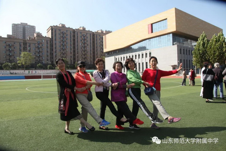 秋天的泉城,阳光明媚,碧空万里。迎来建校70周年校庆的山东师范大学附属中学,盛装迎接着老教师们的到来。山东师大附中党委书记孟宪喆为活动致辞,副校长陈德海,副校长、校本部执行校长刘从军,工会主席李苏翰陪同退休教师们一起健步、愉快畅谈,沐浴着和煦的阳光,健步走在体育场的跑道上。退休教师们神采奕奕,精神焕发,或漫步足球场,或憩聚低语,一边欣赏着秋天校园里如诗如画的美景,一边感受着老同事、老朋友相聚的喜悦,享受着健身的快乐。老教师们一起为70岁的山东师范大学附属中学录制祝福视频,欢声笑语在体育场的上空飞扬。