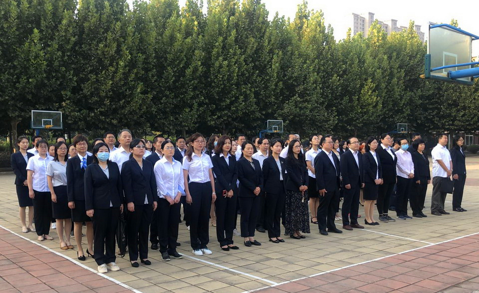 伴随着嘹亮雄壮的国歌,鲜艳的五星红旗冉冉升起,全体师生共同祝愿伟大的祖国繁荣昌盛,祝福山东师大附中蒸蒸日上。