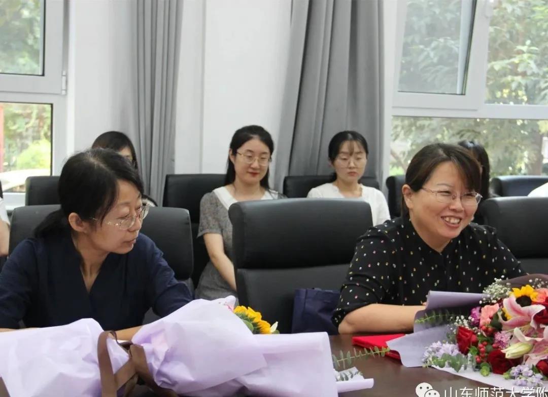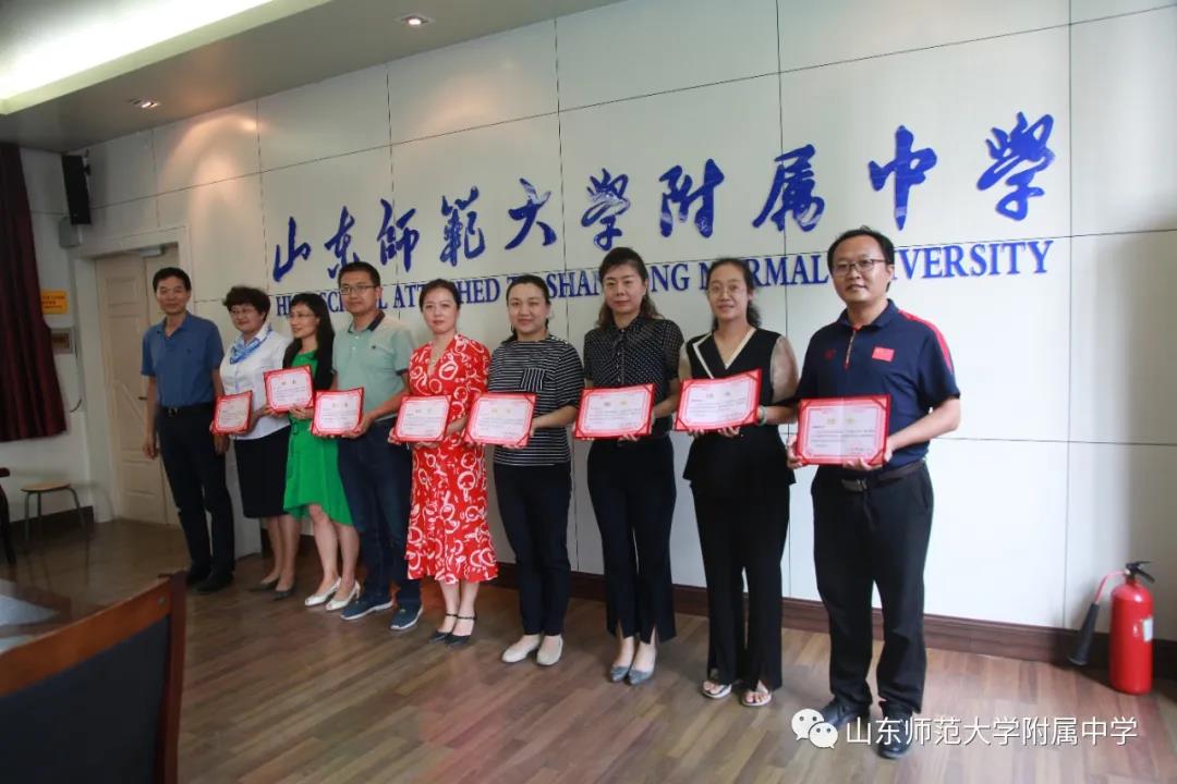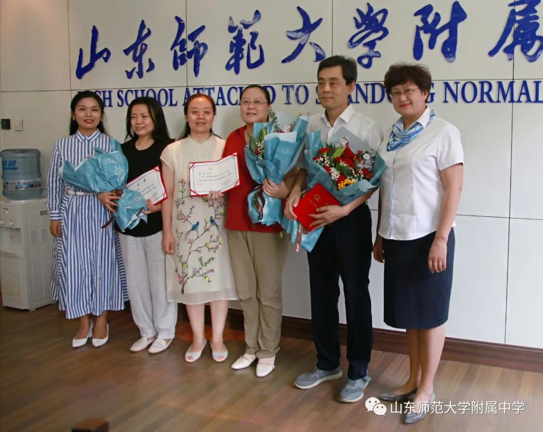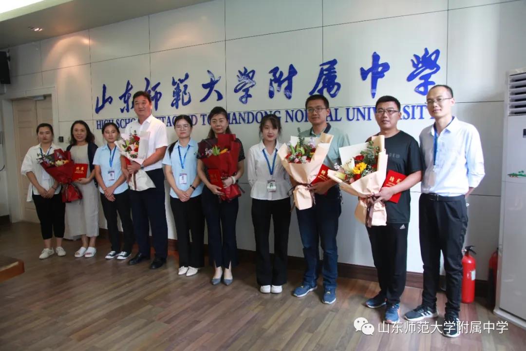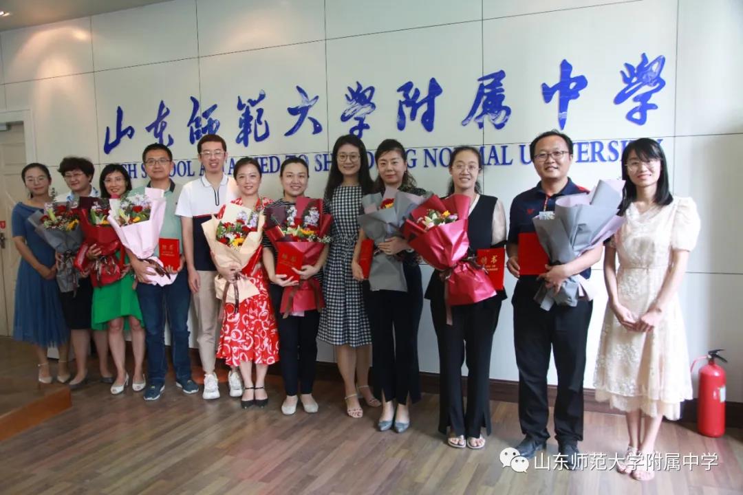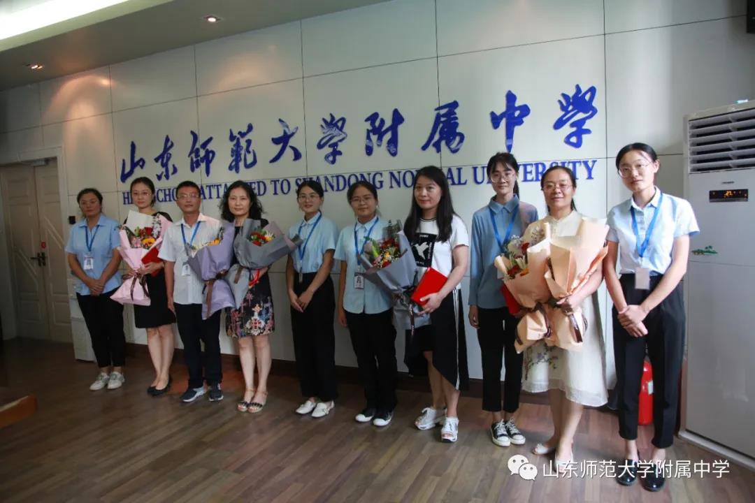 座谈会上,荆兆晶、孟宪喆为王冰、李明、史宏伟、何有清、卢玉芳、王慧、杨洪漪、张耀彬等八位光荣从教三十周年教师颁发荣誉证书。学校领导为曲国勇等25位指导教师颁发聘任证书。附中2020年新入职教师为自己的教学工作指导教师和班主任工作指导教师献花,行礼拜师。