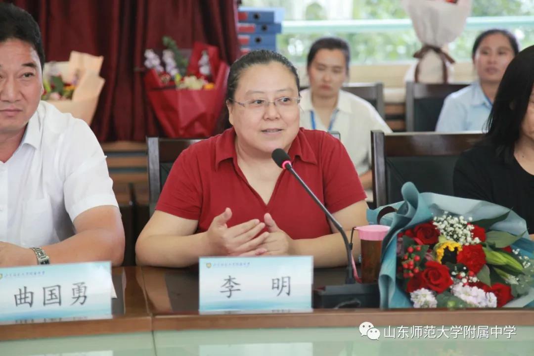 指导教师代表曲国勇、刘月英老师分别在座谈会上发言。他们不约而同地谈到“爱”“责任”与“传承”。他们说,附中领导关爱教师,教师相互友爱,老师们在爱的氛围里幸福成长;希望新老教师们勇担责任,传承附中优良品质,兢兢业业、精益求精;做追求幸福的摆渡者,做严而有度的引领者,做不断成长的学习者;成就更好的自己,成就更多的学生,成就附中更美好的未来。