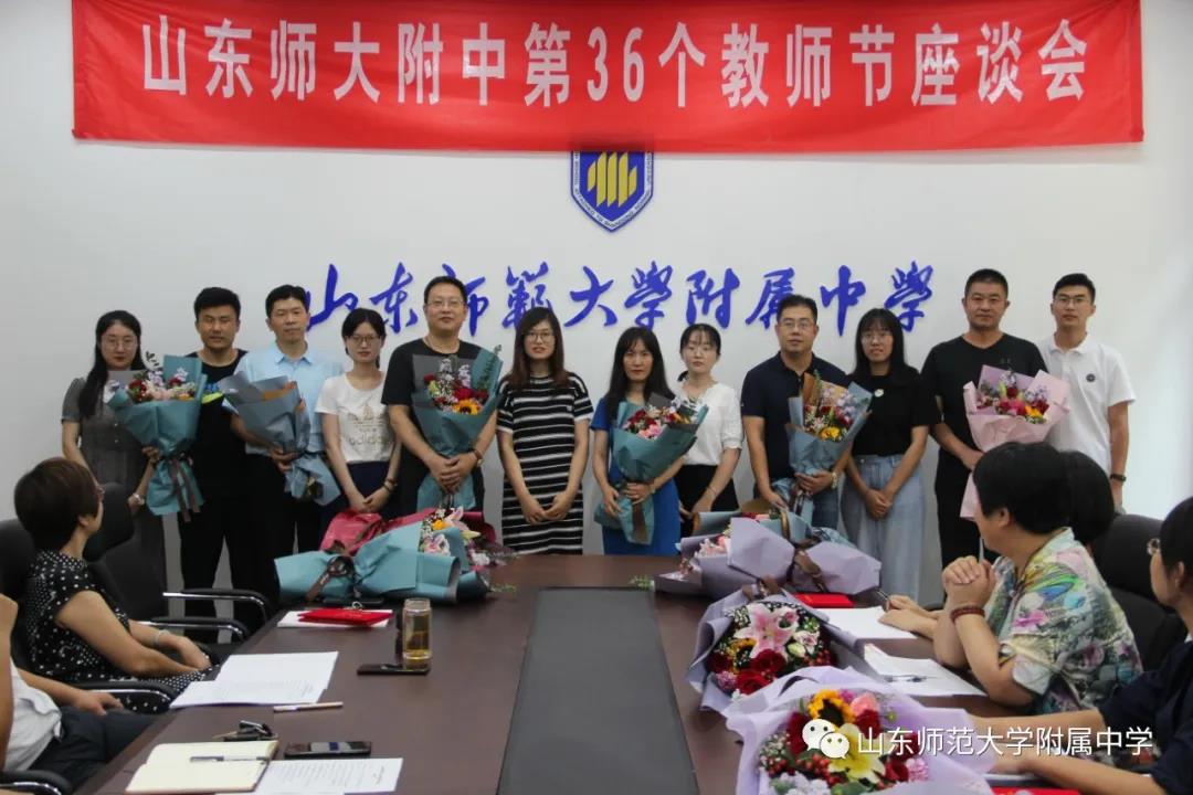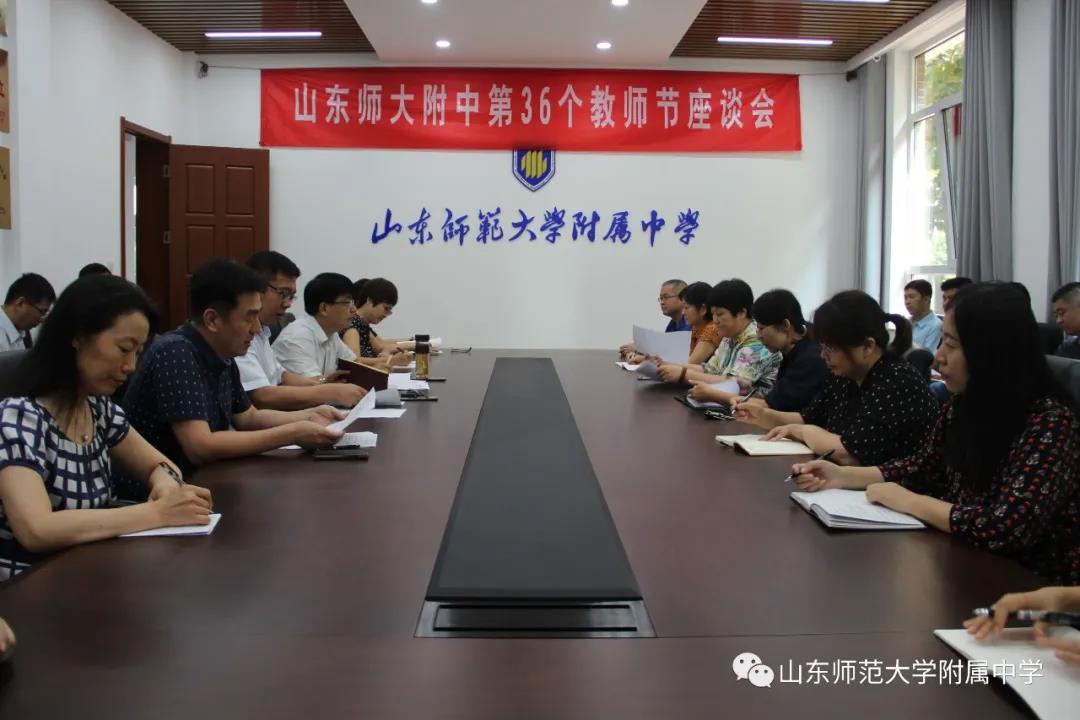 9月7日下午,山东师大附中两校区同时举行庆祝第36个教师节座谈会。山东师大附中校长荆兆晶,党委书记孟宪喆,副校长陈德海,副校长、校本部执行校长刘从军,副校长、幸福柳分校执行校长杨仁勇和部分中层干部,从教三十周年教师、新入职教师及指导教师分别在两校区参加座谈会。合作学校鲁州高级中学总监谭英海、校长薛彦成和部分青年教师参加了校本部座谈会。
