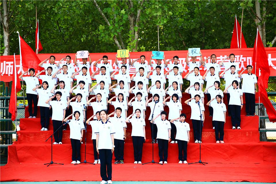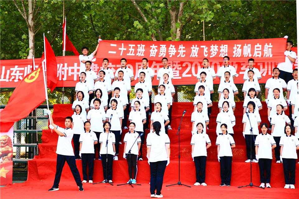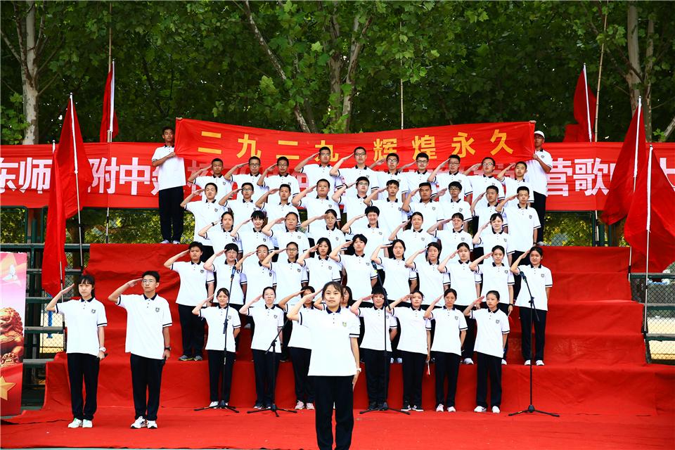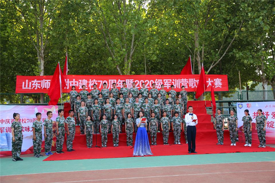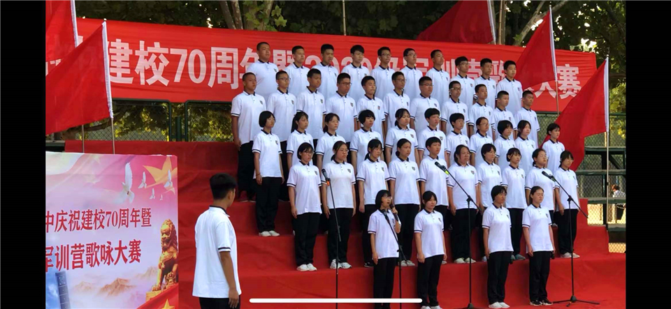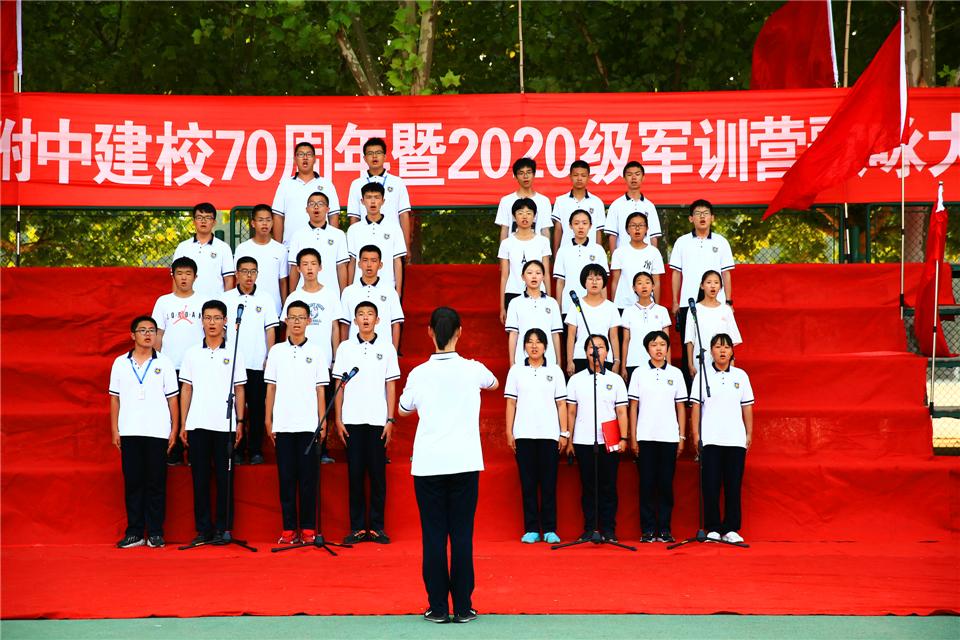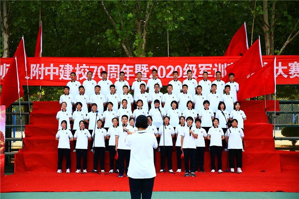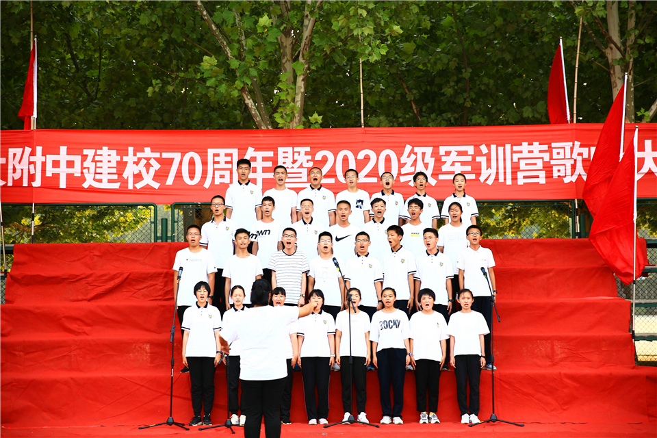 8月29日下午,山东师大附中庆祝建校70周年暨2020级新生军训营“共抒爱国情,绽放卓越梦”歌咏大赛在幸福柳校区举行。