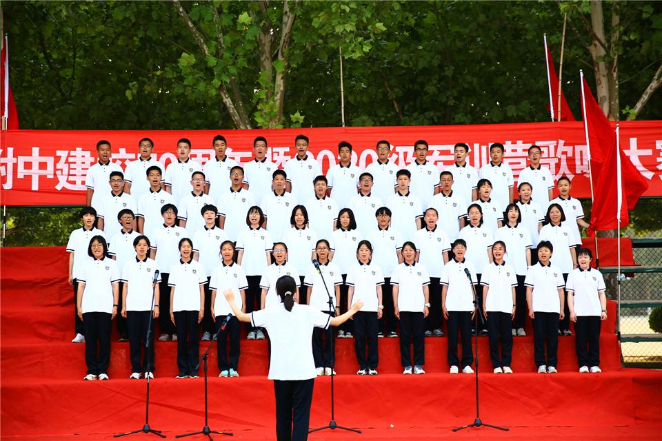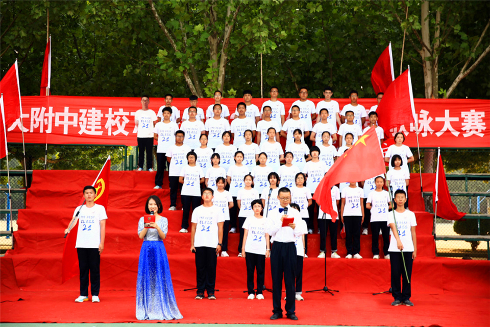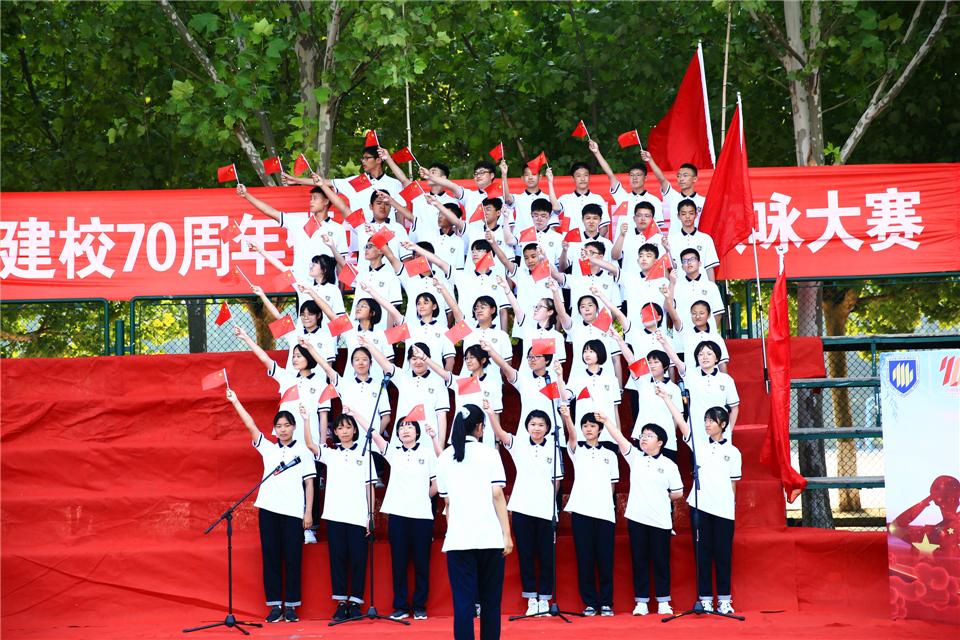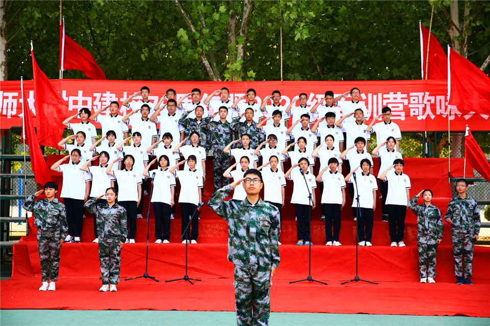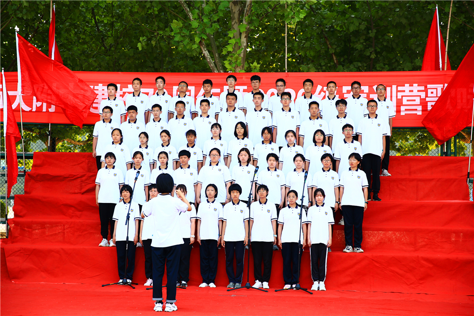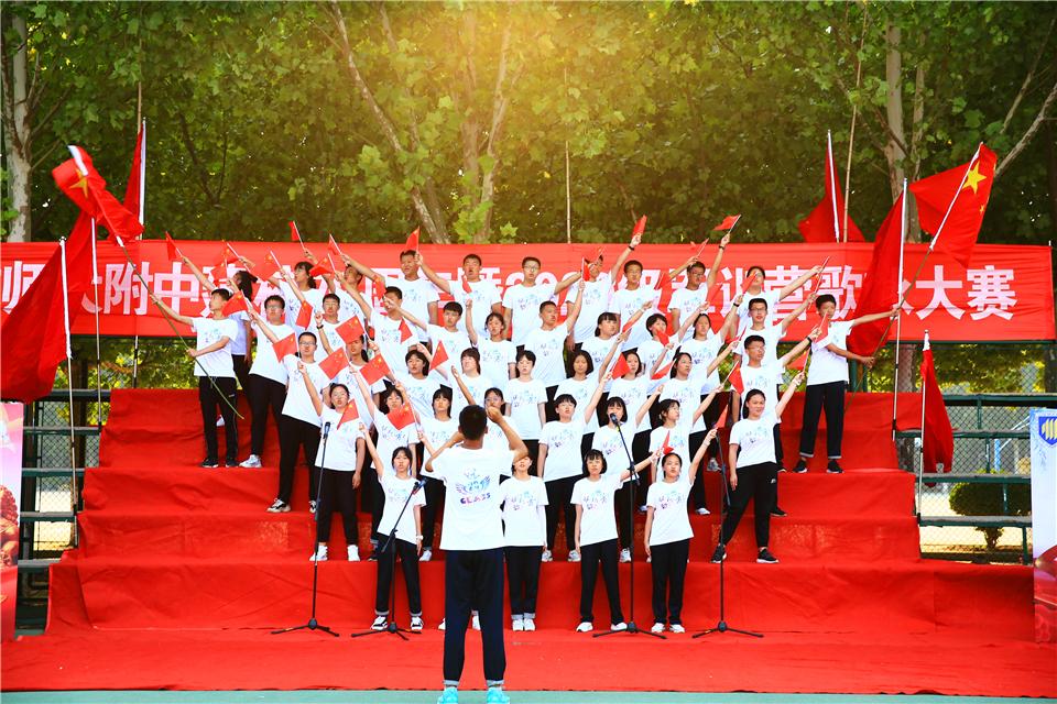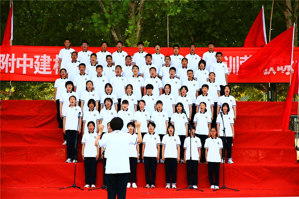 8月29日下午,山东师大附中庆祝建校70周年暨2020级新生军训营“共抒爱国情,绽放卓越梦”歌咏大赛在幸福柳校区举行。