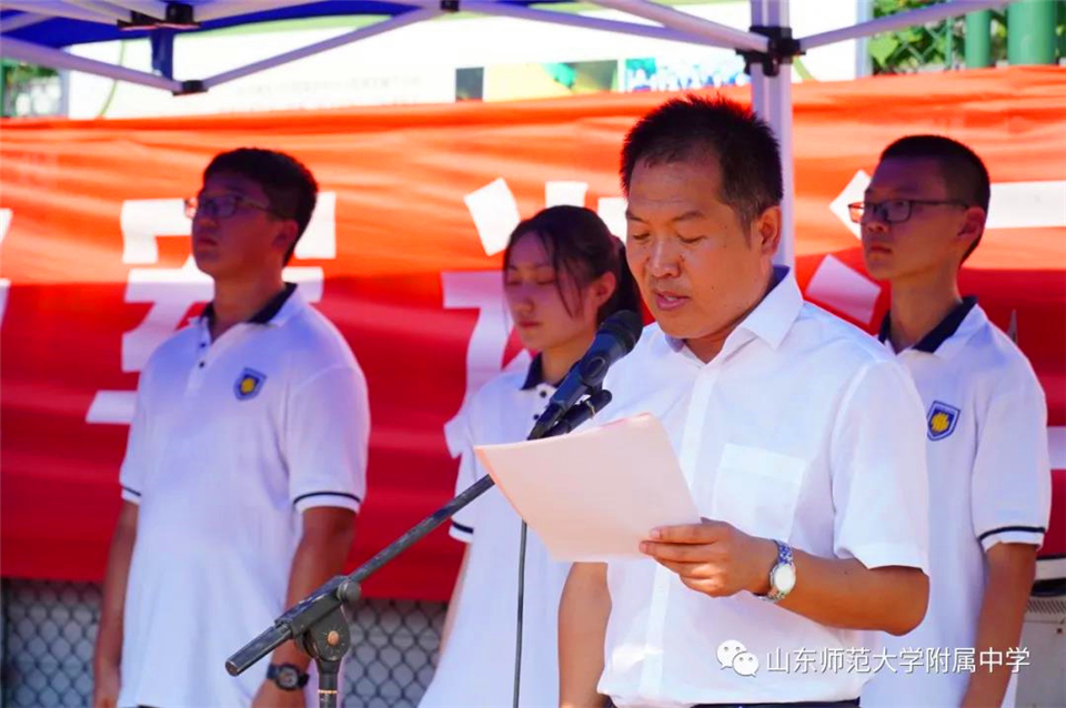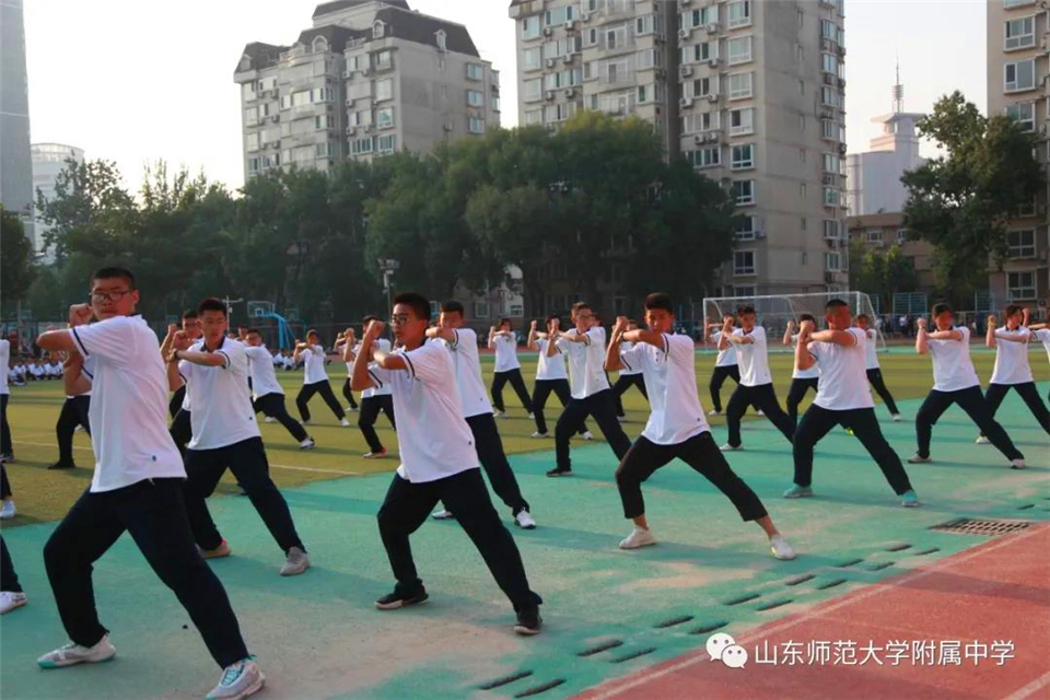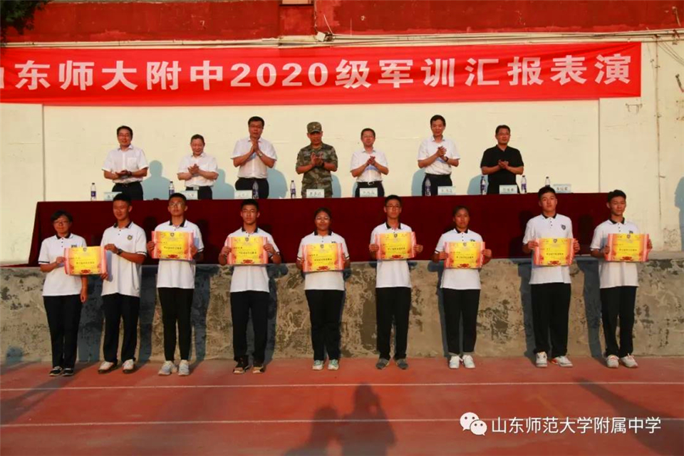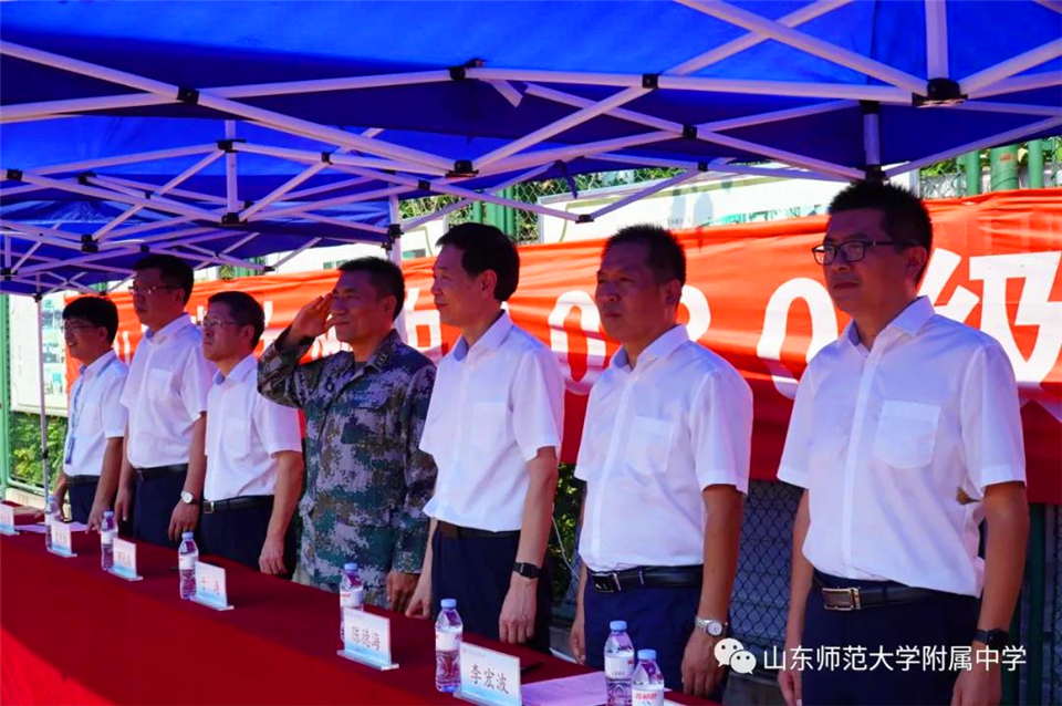 8月30日下午,天朗气清,惠风和畅,山东师大附中校本部和幸福柳分校分别隆重举行2020级新生军训汇演。历下区人武部部长苏圣泳,历城区人武部部长于涛,山东师大附中校长荆兆晶,党委书记孟宪喆,副校长陈德海,副校长、校本部执行校长刘从军,副校长、幸福柳分校执行校长杨仁勇,全体新生家长参加了两校区汇演活动。1602名新生组成的32个方队接受了学校领导和家长的检阅。