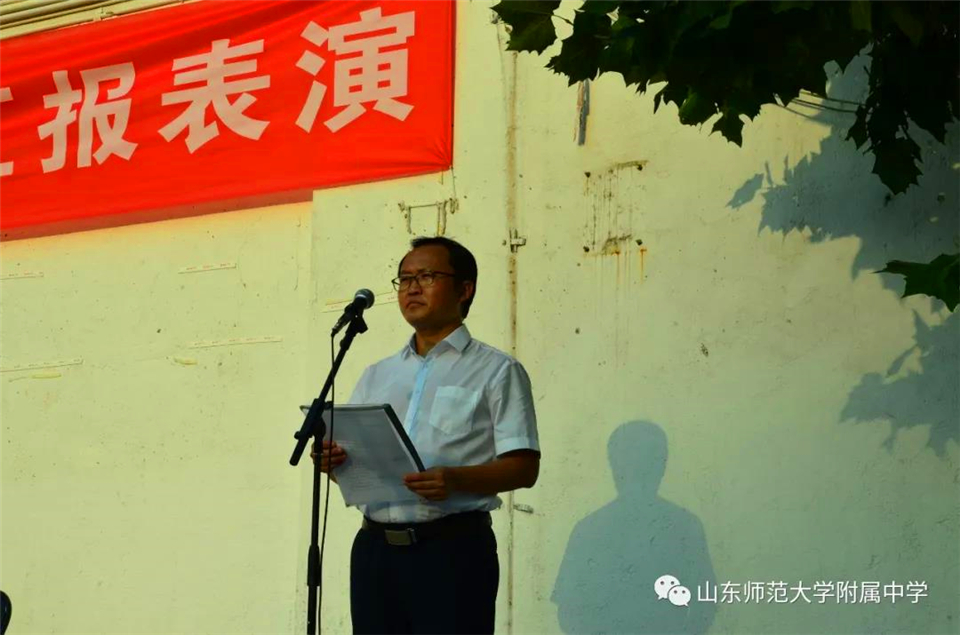 追逐着八月的和风,沐浴着金秋的阳光,校本部14个整齐有序的军训方阵等待着学校领导与家长的检阅和验收。校本部汇演由高一年级组长李现国主持。