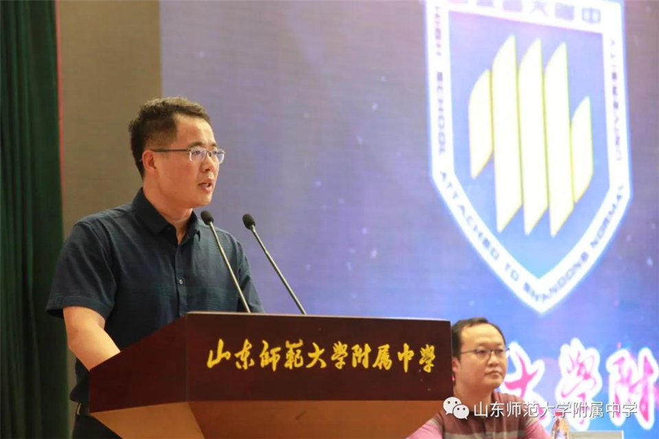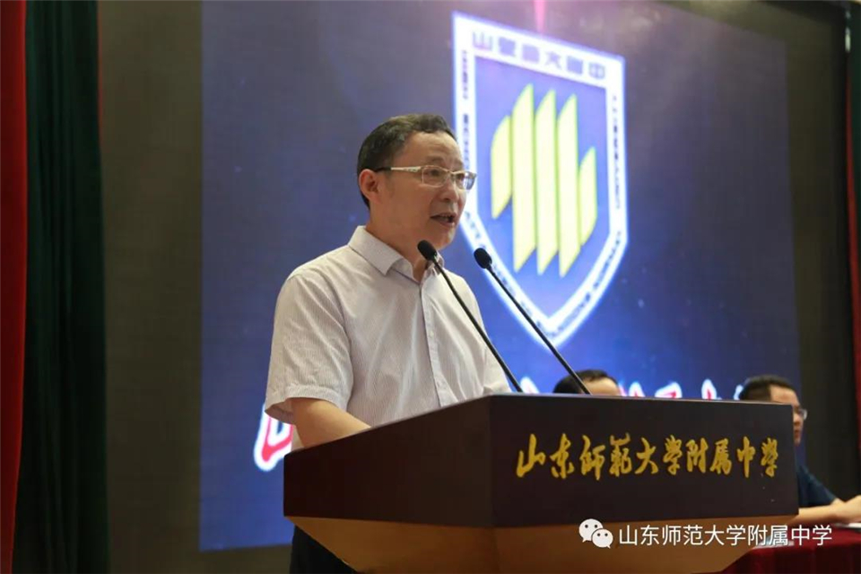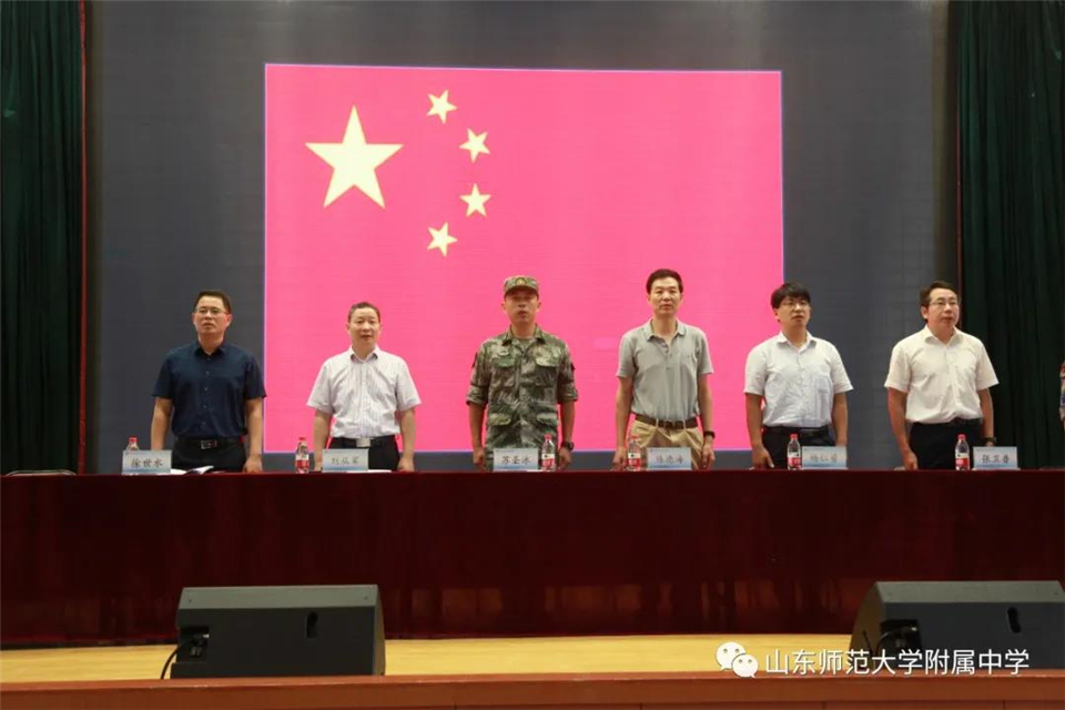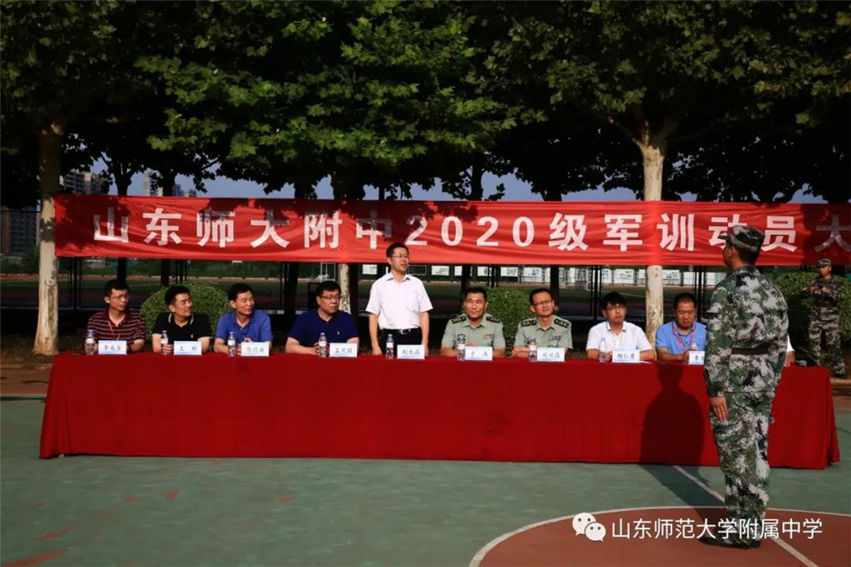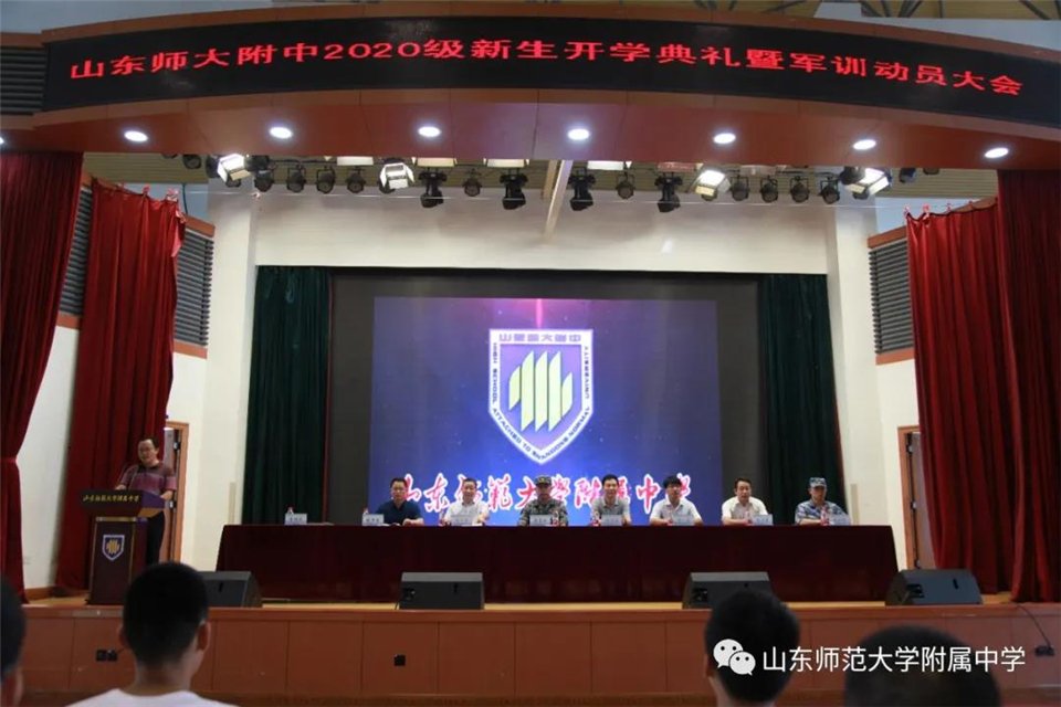 8月24日下午,山东师大附中幸福柳分校2020级新生开学典礼暨军训动员大会隆重举行。历城区人武部部长于涛、副部长刘兴昌,山东师大附中校长荆兆晶、党委书记孟宪喆、副校长陈德海、副校长杨仁勇出席大会,历城区人武部军训教官及分校区2020级班主任和新生参加了大会。大会由分校区高一年级组长颜炳杰主持。