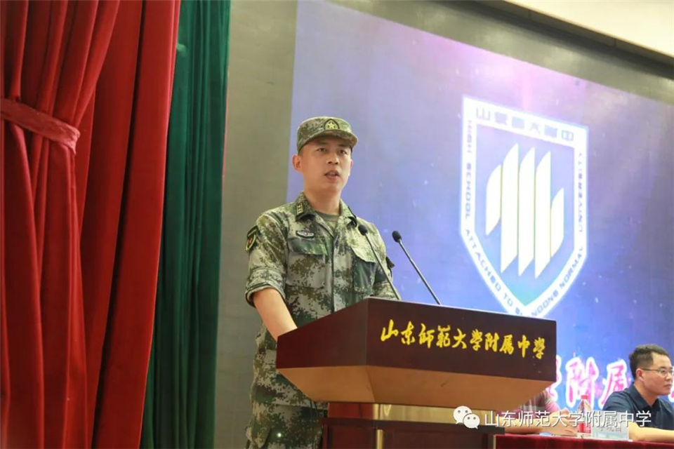 历下区人武部部长苏圣泳从国际形势的严峻,国防教育的迫切等角度对全体学生提出了军训要求,他希望同学们只争朝夕,不负韶华。