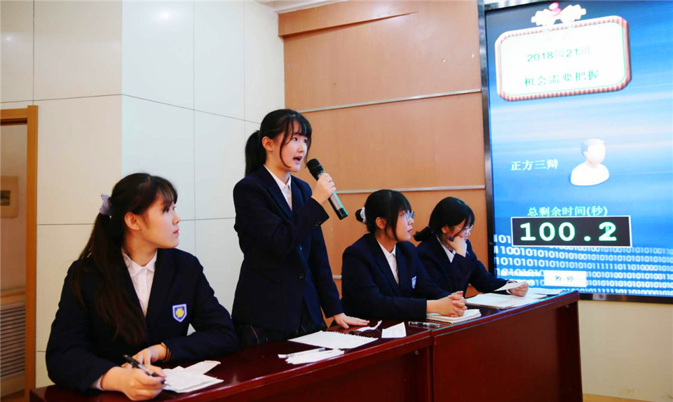 本次比赛由学校团委主办、高二级部承办,经过初赛、复赛、半决赛的激烈角逐,由王涵、马硕、赵文浩、曹博文组成的高二.15班辩论队和由李舒雅、于晓滢、徐攸宁、李梓扬组成的高二.21班辩论队脱颖而出会师决赛。决赛辩题为“机会需要把握还是创造”,双方辩手以辩明理,以论促学,敢想,愿思,用思想的博弈和语言的交锋奉献了一场精彩的视听盛宴。最终,比赛以正方高二.21班获胜圆满落幕。
