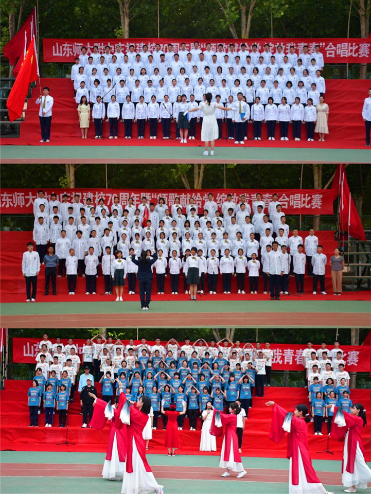 山东师大附中一直全面贯彻“以人为本,全面发展”的办学理念,注重打造“最优个性化教育”,每年举办主题鲜明的合唱比赛。本项活动为广大学生提供了全面展示自己、发展完善自己的舞台,有利于凝聚师生家国情怀,提升师生艺术素养,增进班集体凝聚力,是附中文明校园建设的重要组成部分。