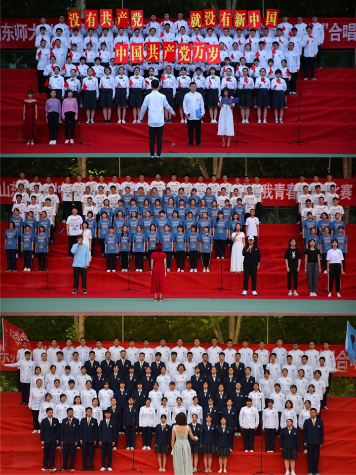 比赛曲目分必选曲目和自选曲目两部分。必选曲目为红色经典《没有共产党就没有新中国》,自选曲目为《我爱你,中国》《爱我中华》《保卫黄河》《我的梦》等一首首昂扬向上、催人奋进的歌曲。各组合用嘹亮的歌声礼赞中国共产党,用精彩的表演抒发对学校和祖国的热爱。高一级部全体班主任带来的诗朗诵《青春的脚步》,博得全场的阵阵喝彩!全体师生共同演唱励志歌曲《少年》,将本次合唱比赛的氛围推向高潮!