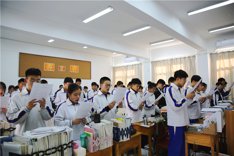 2019年12月是山东省第三个“法治宣传教育月”,12月1日-7日是全国第二个“宪法宣传周”,为深入学习贯彻党的十九大和十九届二中、三中、四中全会精神,推动我校学生深入学习宪法,弘扬宪法精神,维护宪法权威,树立高中学生的法治意识,按照上级教育部门的部署和学校总体安排,12月4日,山东师大附中团委组织两校区学生观看了教育部组织的宪法日主题活动,同时开展宪法晨读活动,两校区全体同学在各班班主任的有效组织下,积极参与,认真跟读宪法内容,展现了附中学生良好的精神风貌。两校区在校园电子屏等显著位置展示国家宪法日相关主题标语,营造了良好的“学宪法、讲宪法”的校园氛围。
