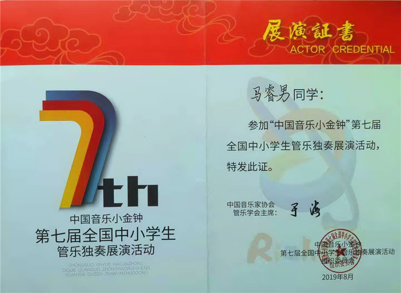 据悉,“中国音乐小金钟”第七届全国中小学生管乐独奏展演活动由中国音乐家协会主办,是我国中小学生最高级别的器乐比赛活动。